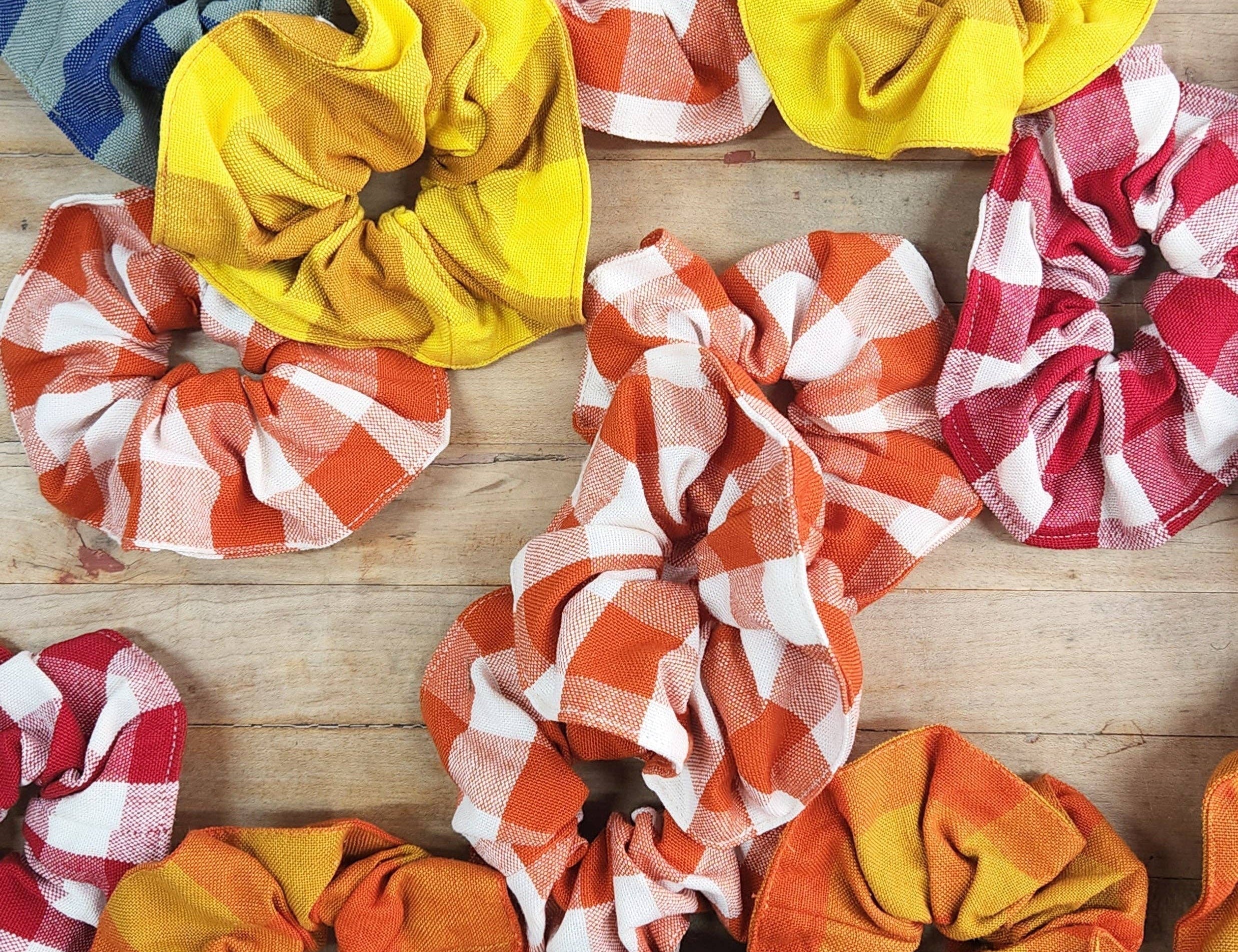All Roads - Cotton Scrunchie - Orange Check