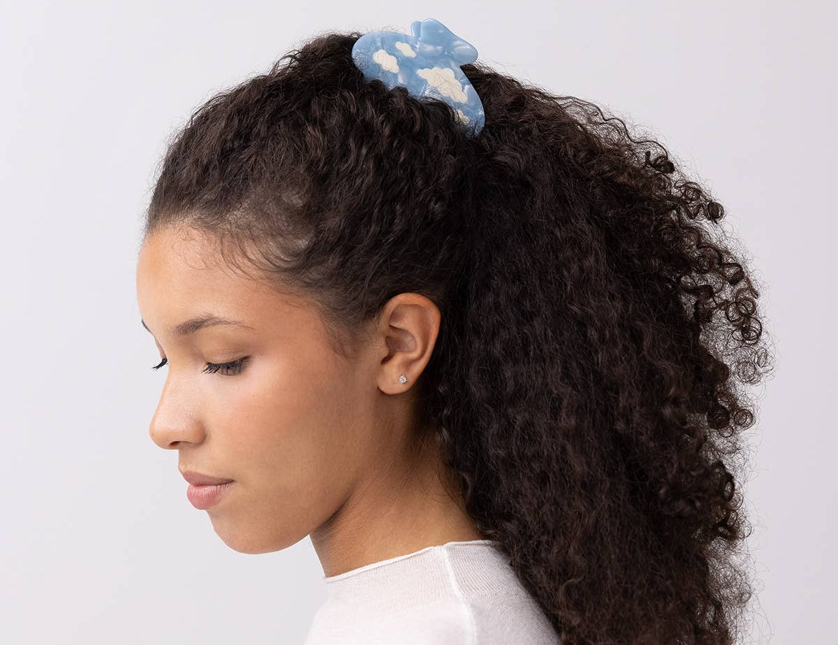 WINONA IRENE - Lucy Sky Blue with White Clouds Acetate Hair Claw Clip