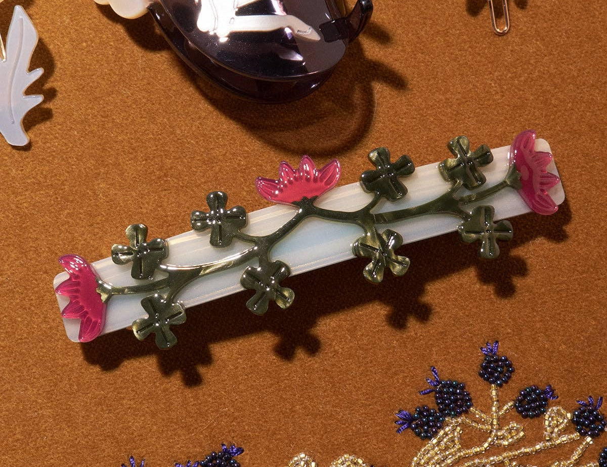 WINONA IRENE - Red Clover Crimson Flowers Women's French Barrette Hair Clip