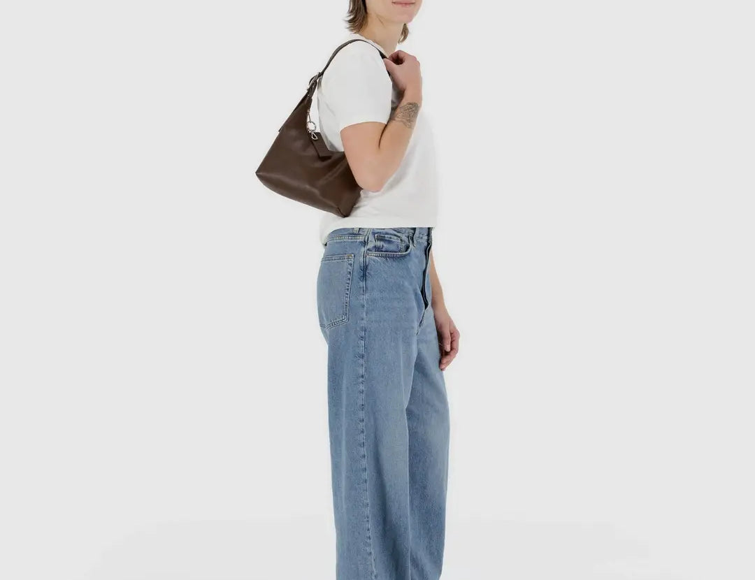 Mini Recycled Leather Shoulder Bag - Brown - BAGGU