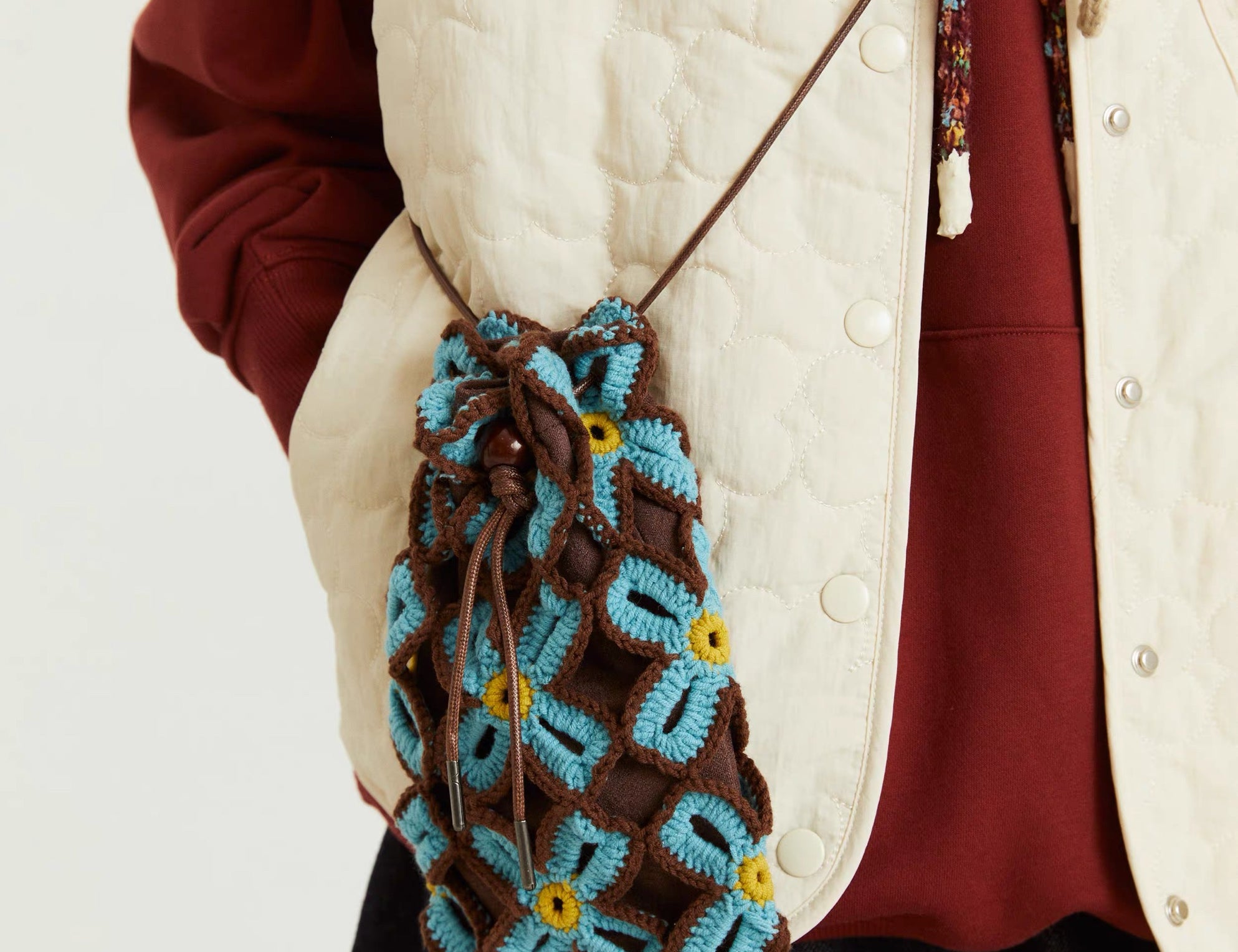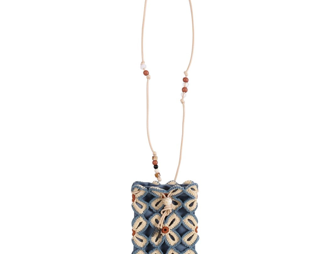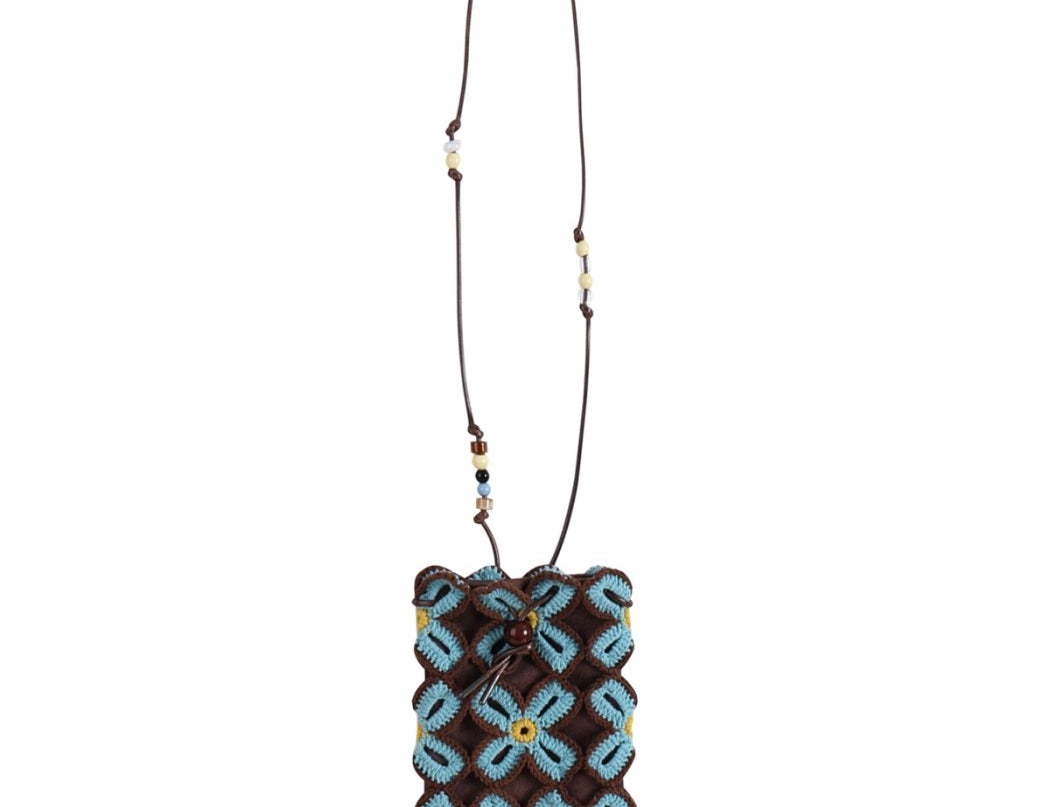 Lucky clover crochet crossbody bag | Brown/Blue -MINIEGG GOODS