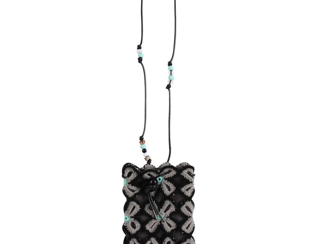Lucky clover crochet crossbody bag | Black/Grey - MINIEGG GOODS