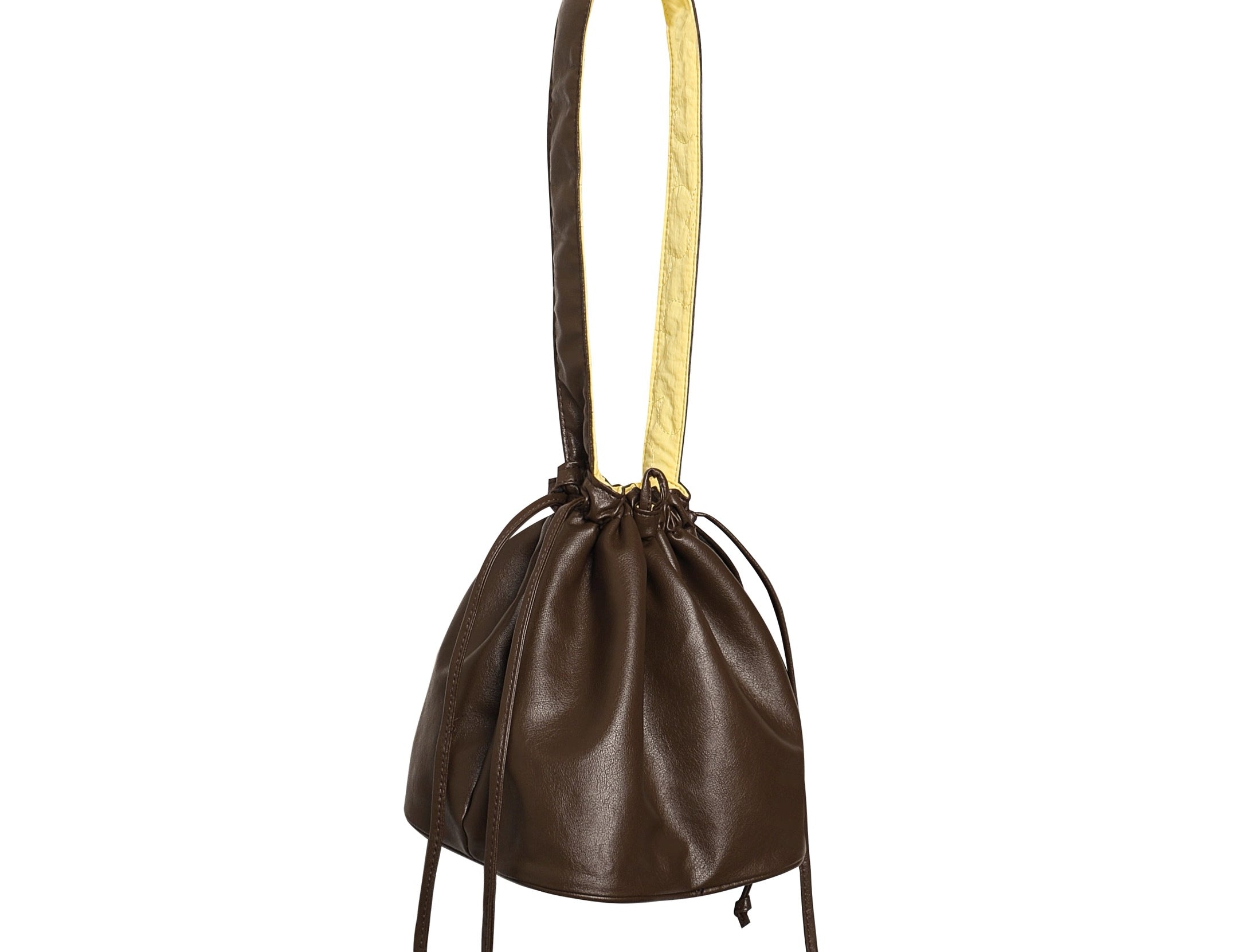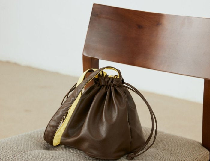Reversible leather & quilted Floral shoulder bag | Brown/Yellow - MINIEGG GOODS