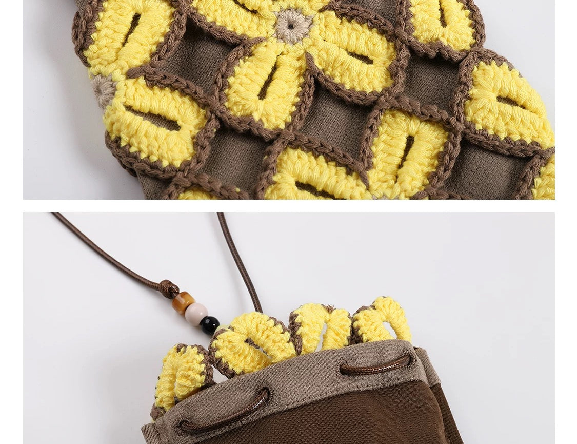 Lucky clover crochet crossbody bag | Brown/Yellow -MINIEGG GOODS