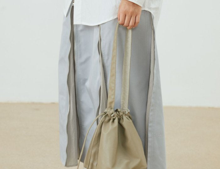 Reversible leather & quilted Floral shoulder bag | Grey/Light Blue - MINIEGG GOODS