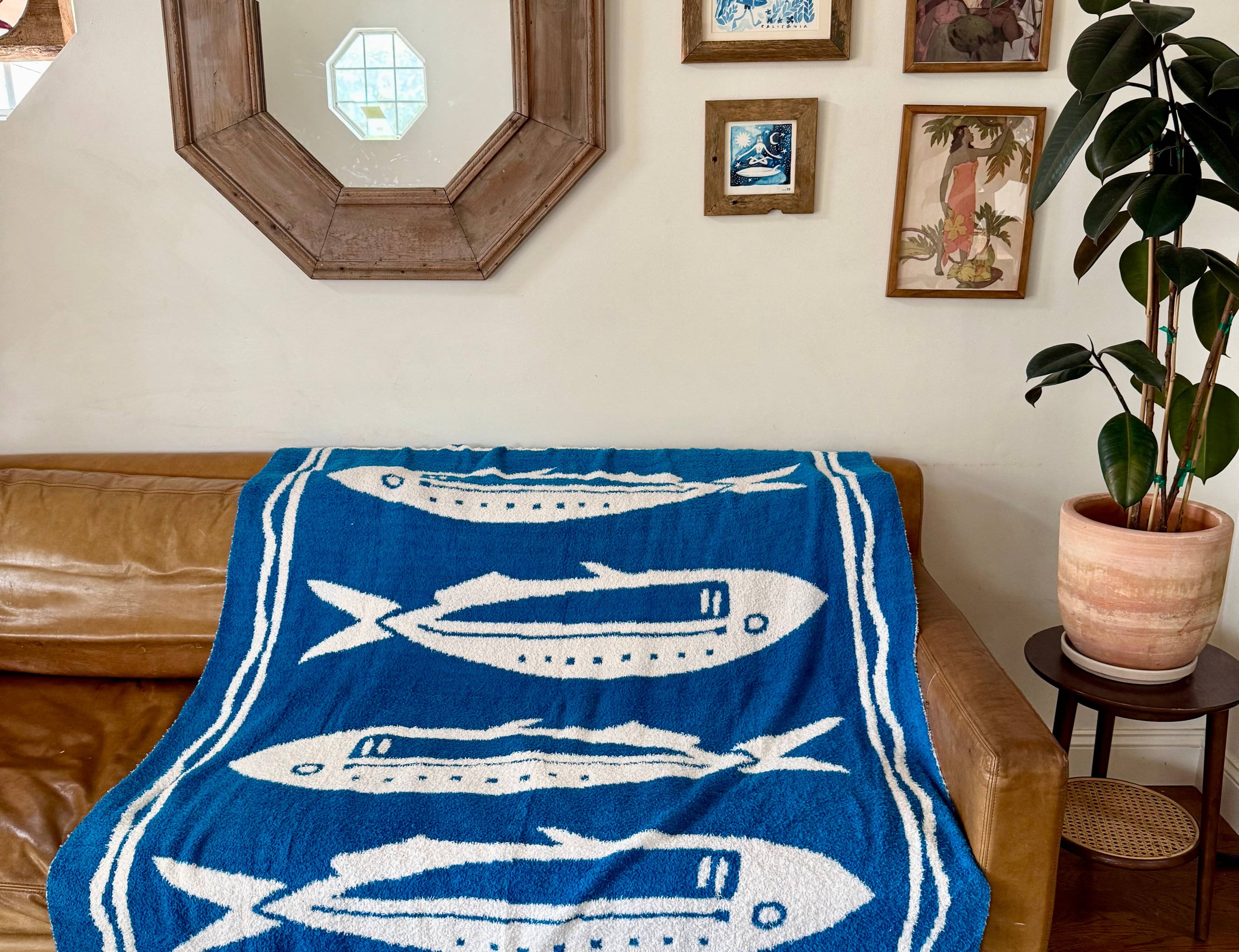 Sundream - Pacific Row Plush Throw - Swell Blue
