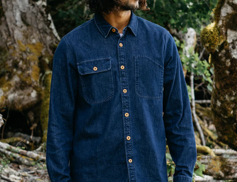 Men's Eddystone Denim Shirt in Mid-Wash Indigo Denim - FINISTERRE
