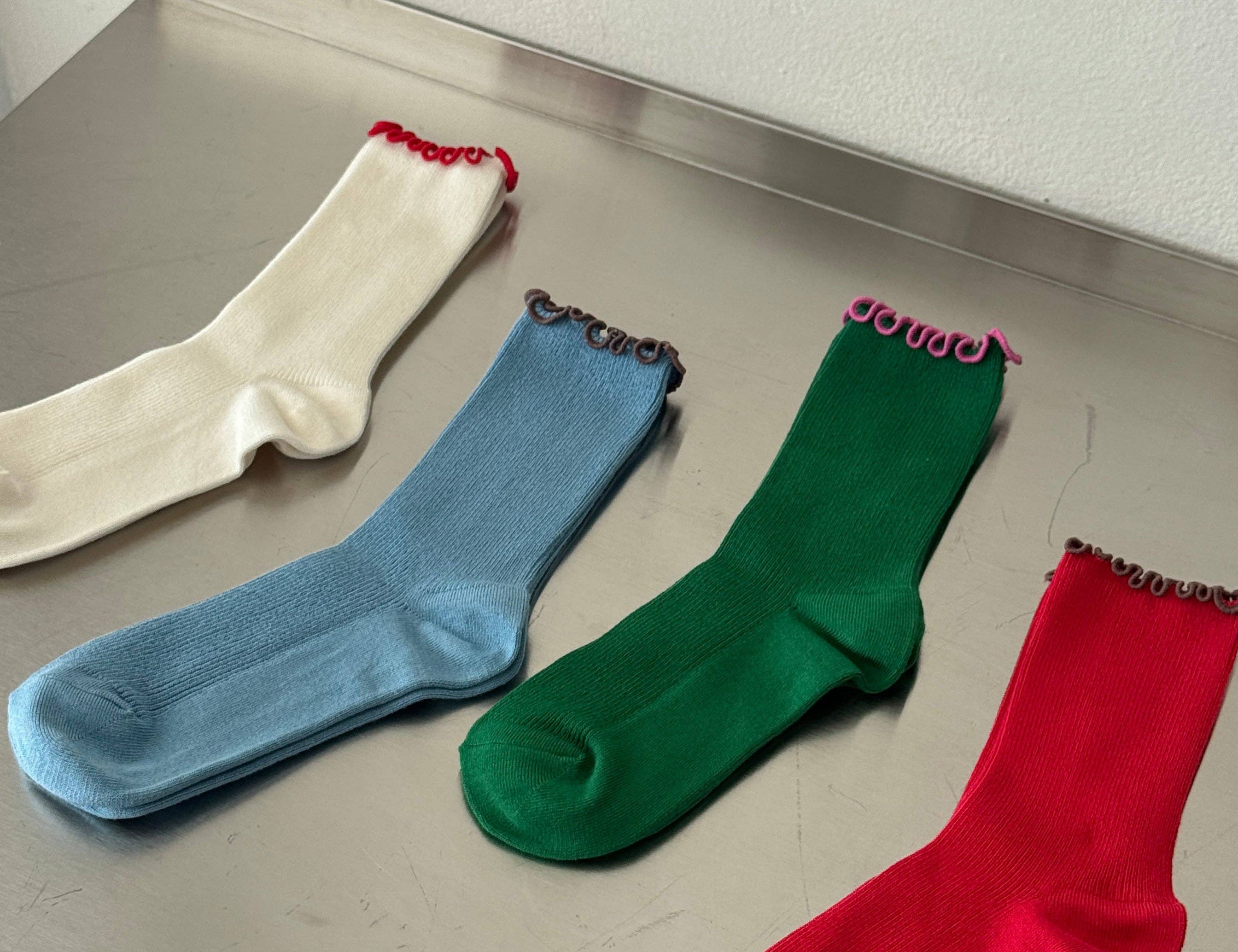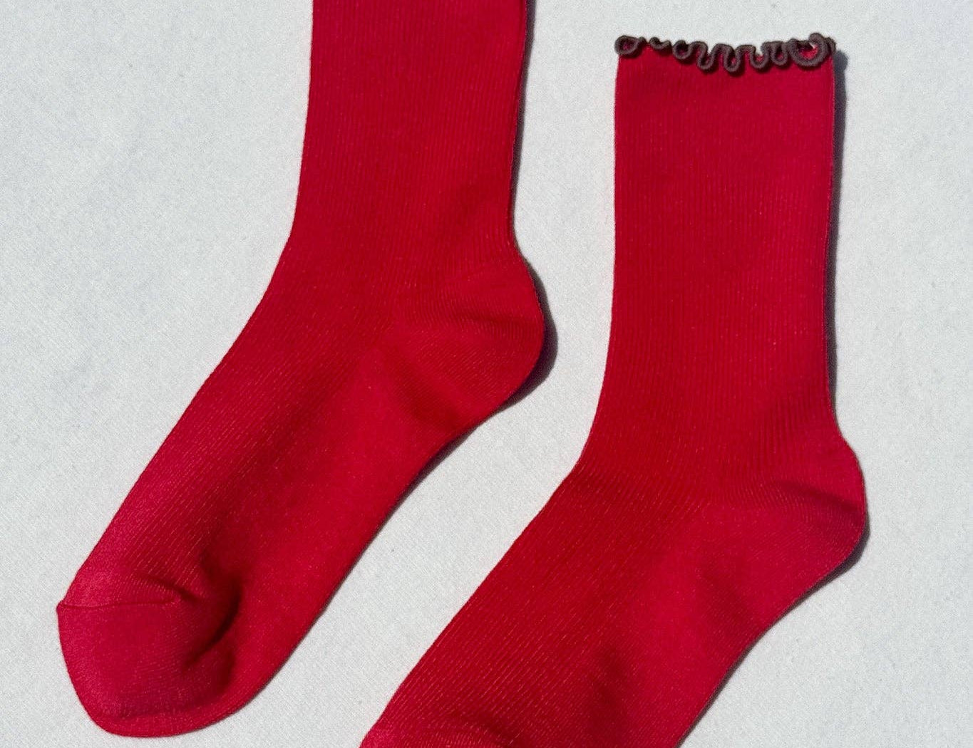 Le Bon Shoppe - Ruffled Modal Socks: PAPRIKA / BROWN EDGE