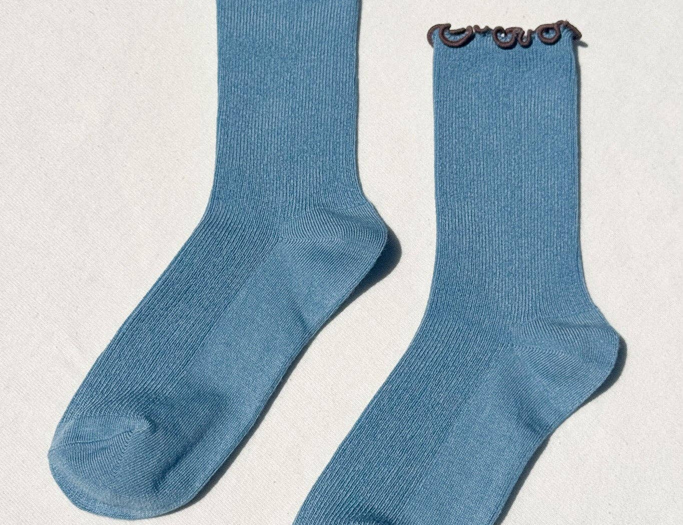 Le Bon Shoppe - Ruffled Modal Socks: POWDER BLUE / BROWN EDGE