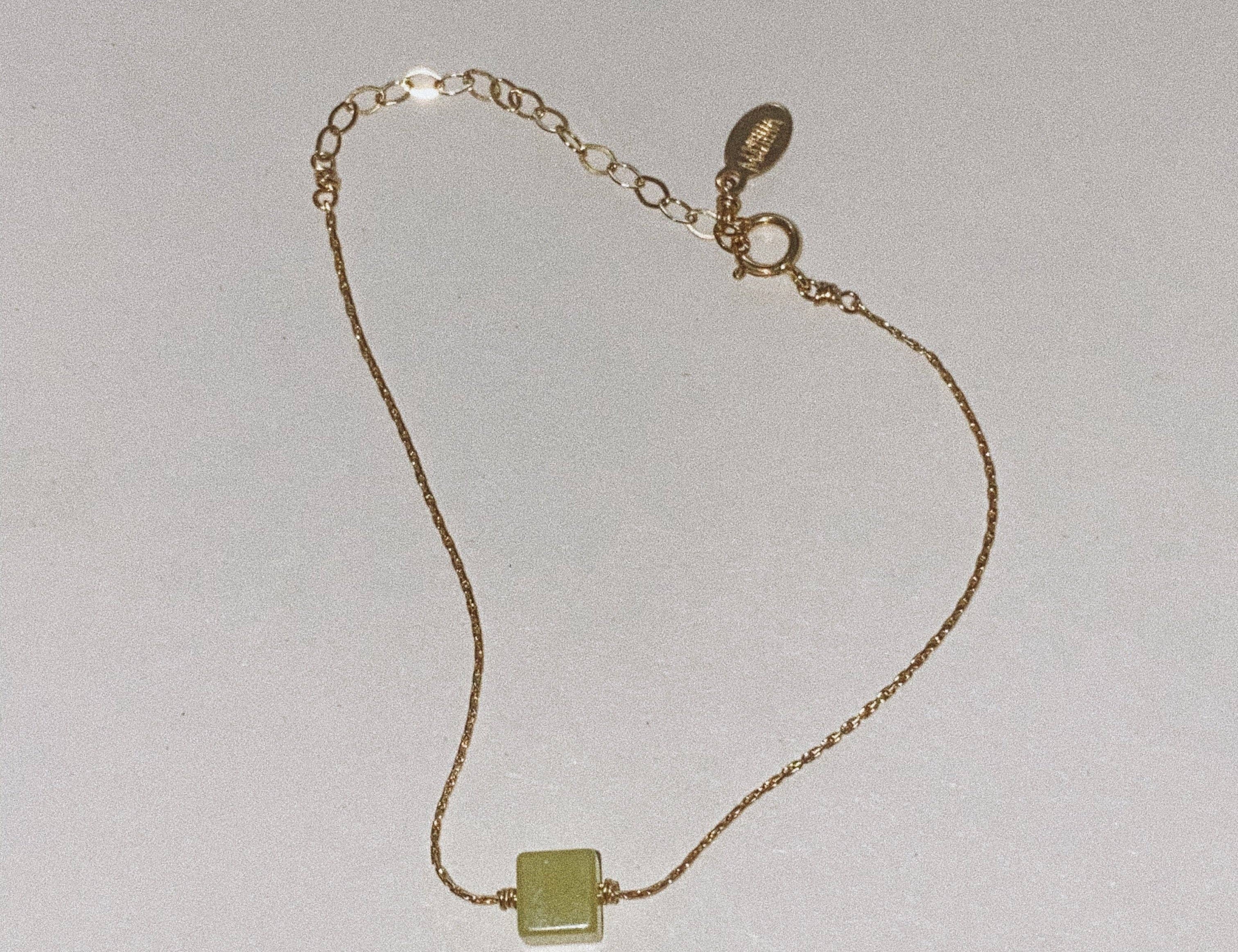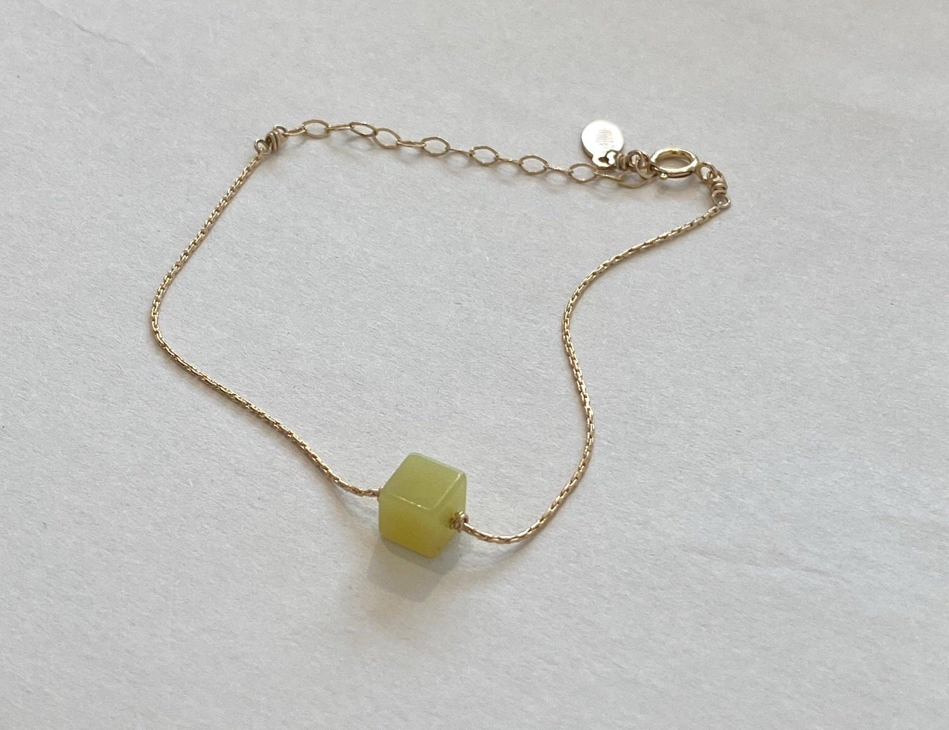 Marida Jewelry - Itty Bitty Bracelet- Block Series: 14K Gold Filled / Olive jade