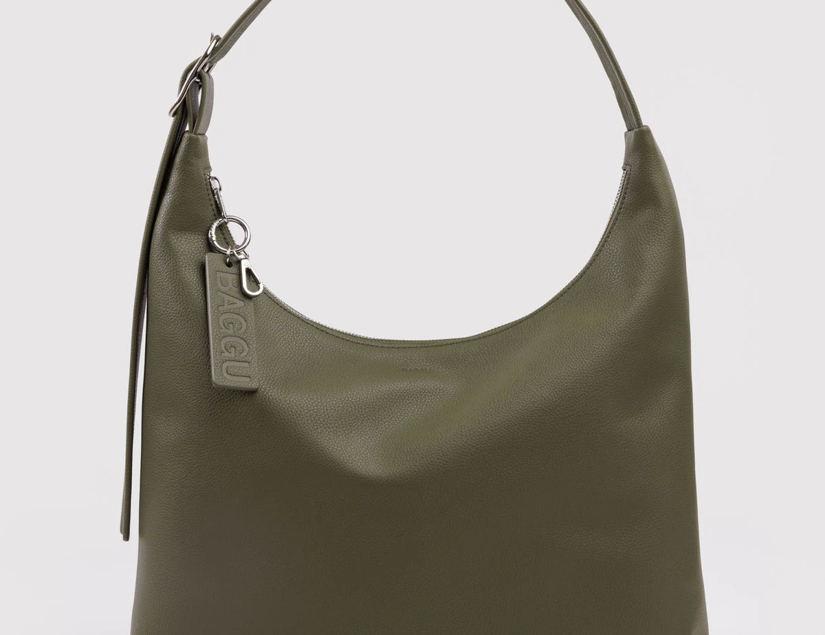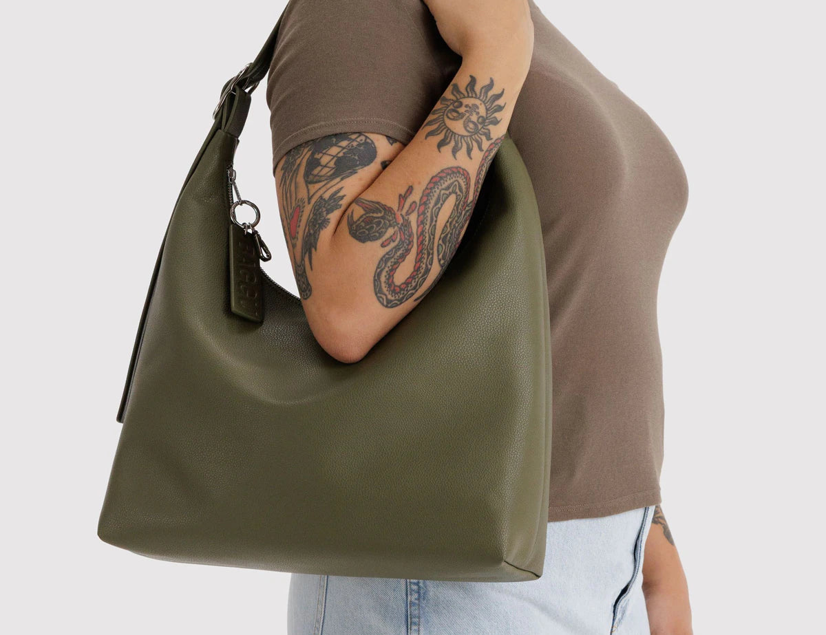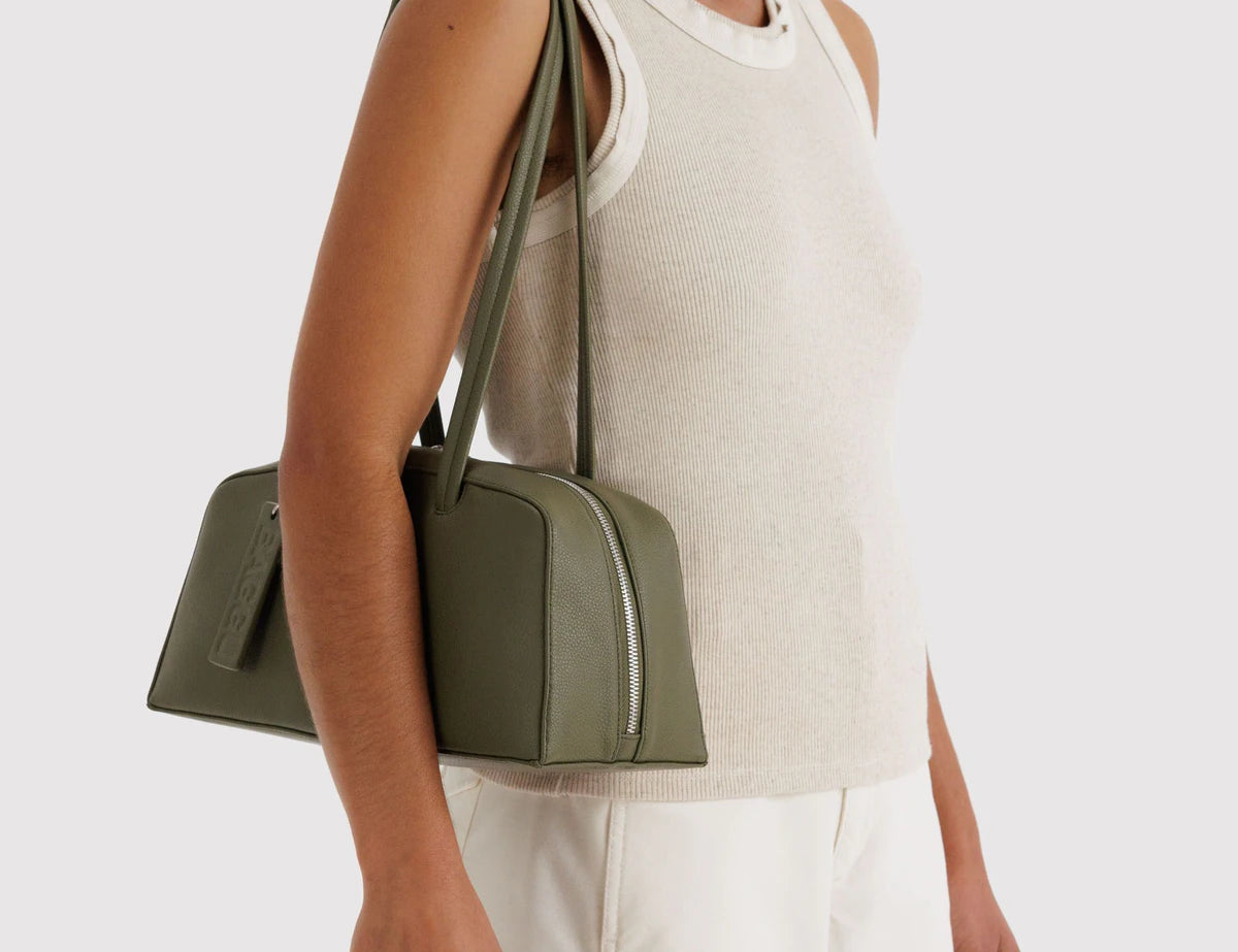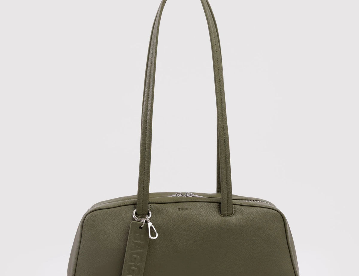 Recycled Leather Shoulder Bag - Loden - BAGGU