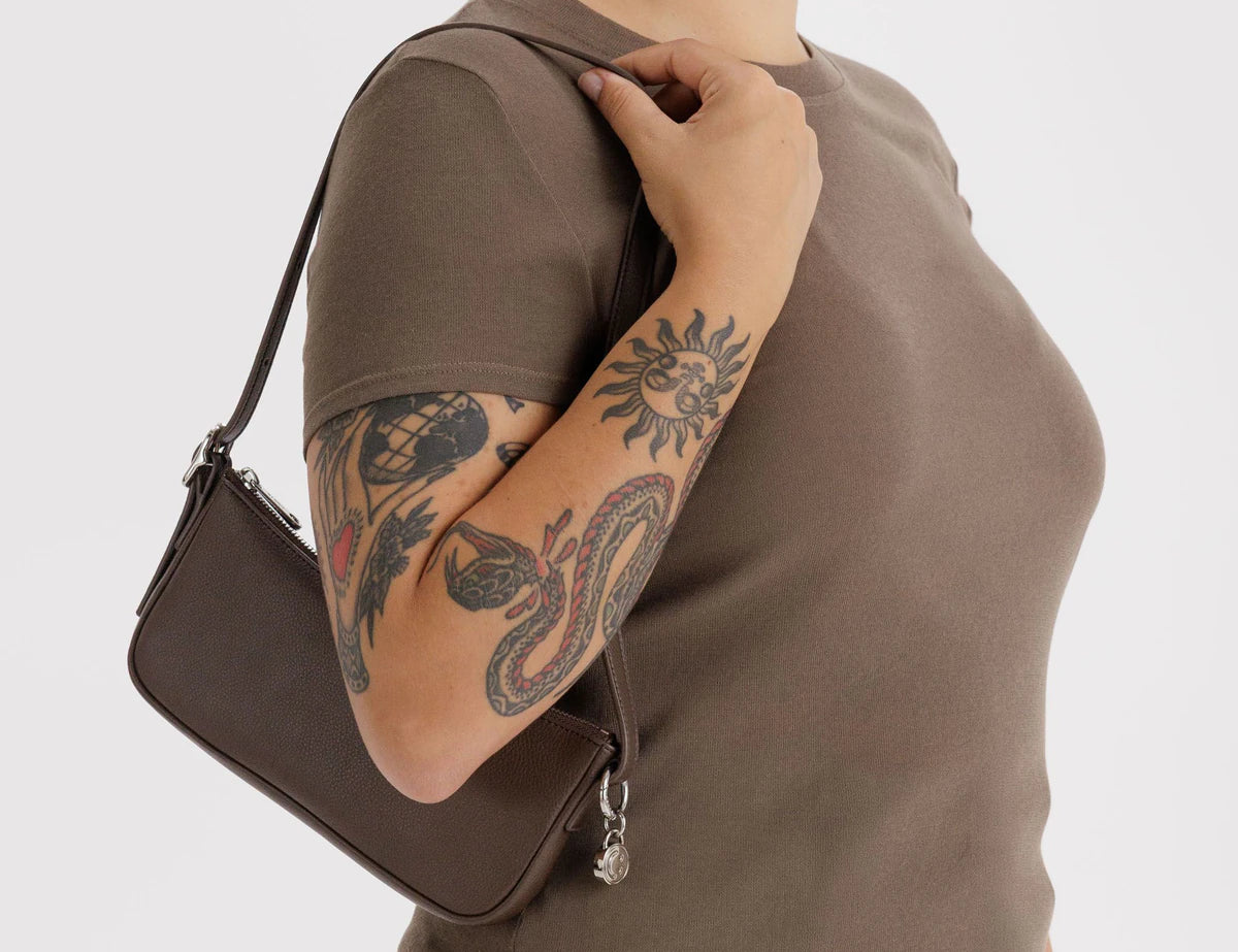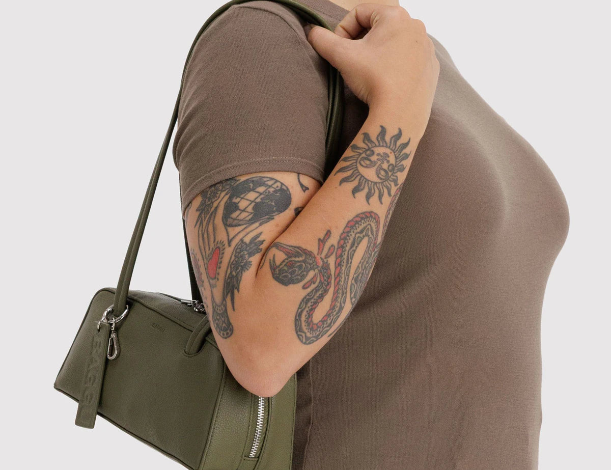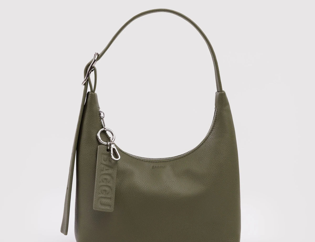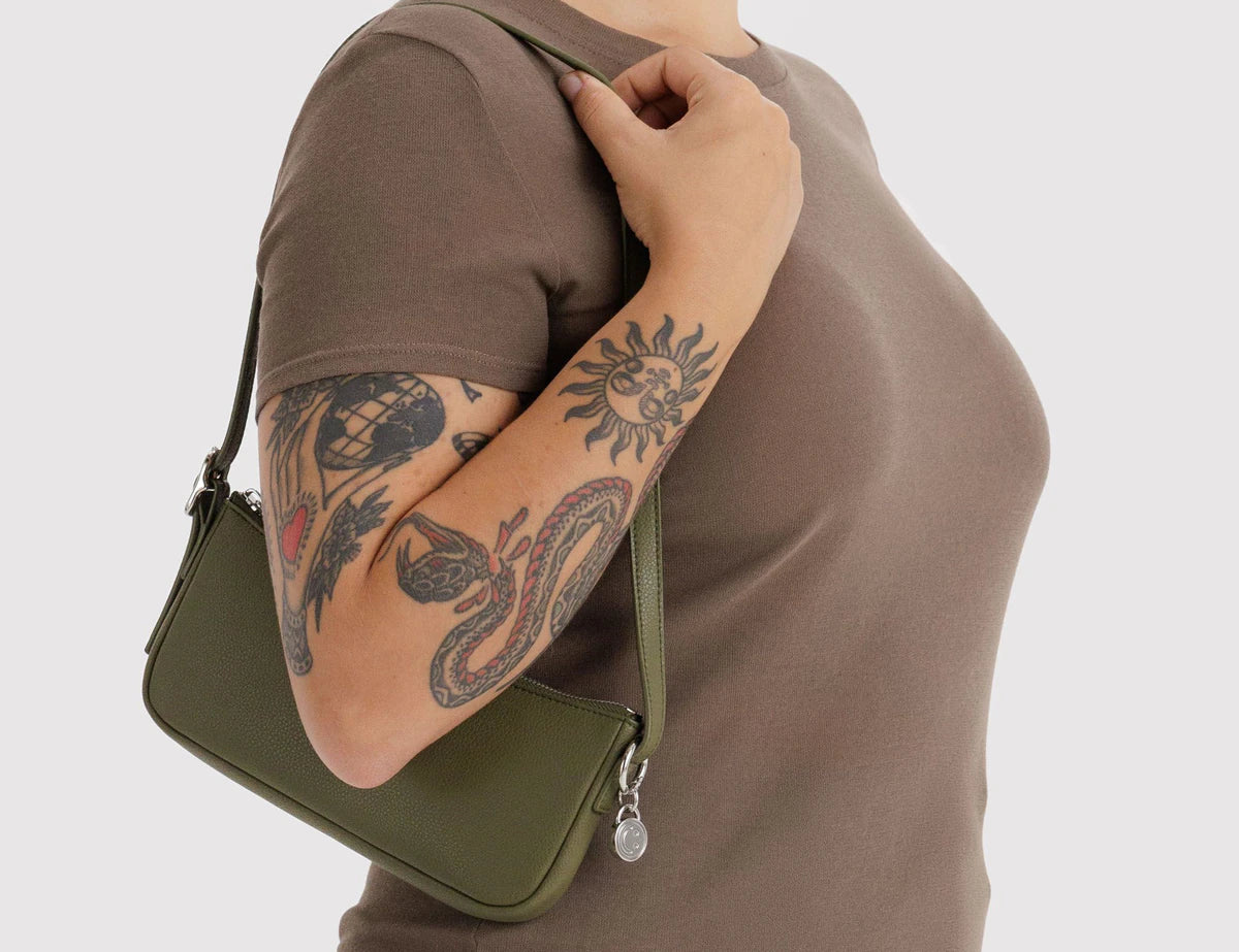 Recycled Leather Shoulder Bag - Loden - BAGGU