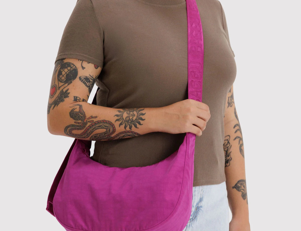 Medium Nylon Crescent Bag - Deep Fuchsia - BAGGU