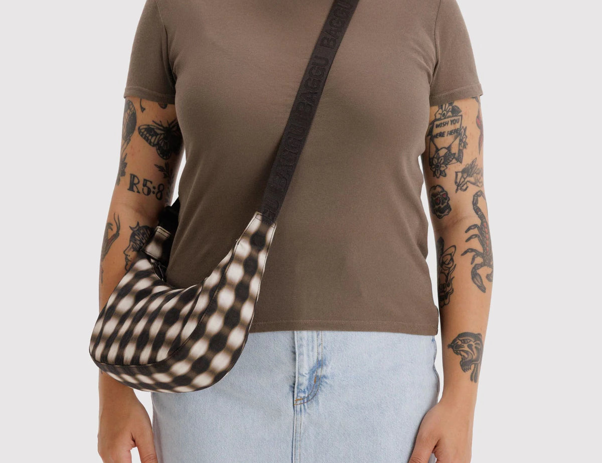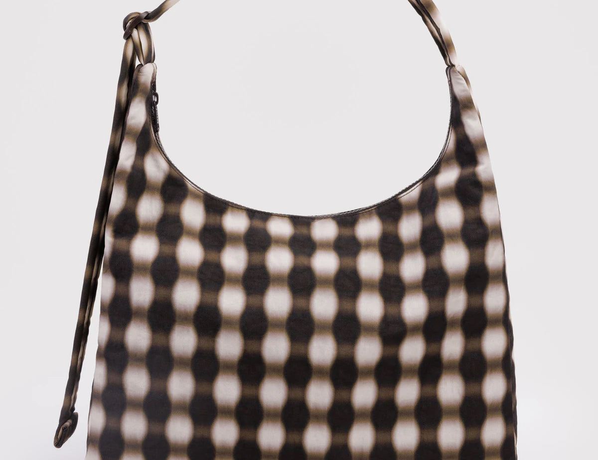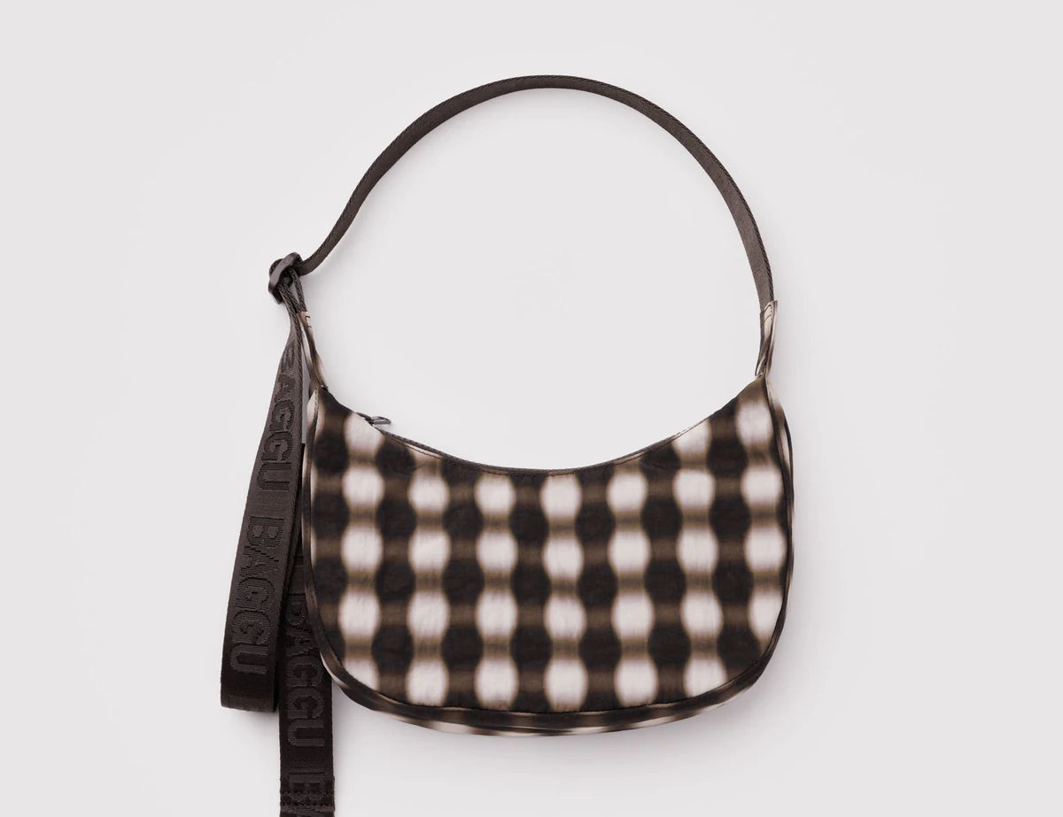 Small Nylon Crescent Bag - Blurred Gingham Brown | BAGGU
