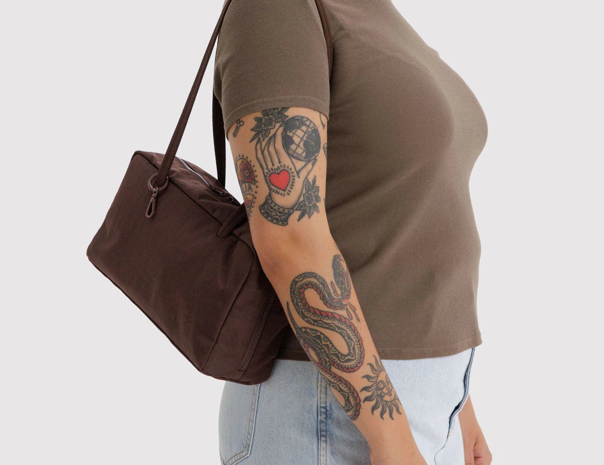 Mini Nylon Shoulder Bag - Coffee - BAGGU