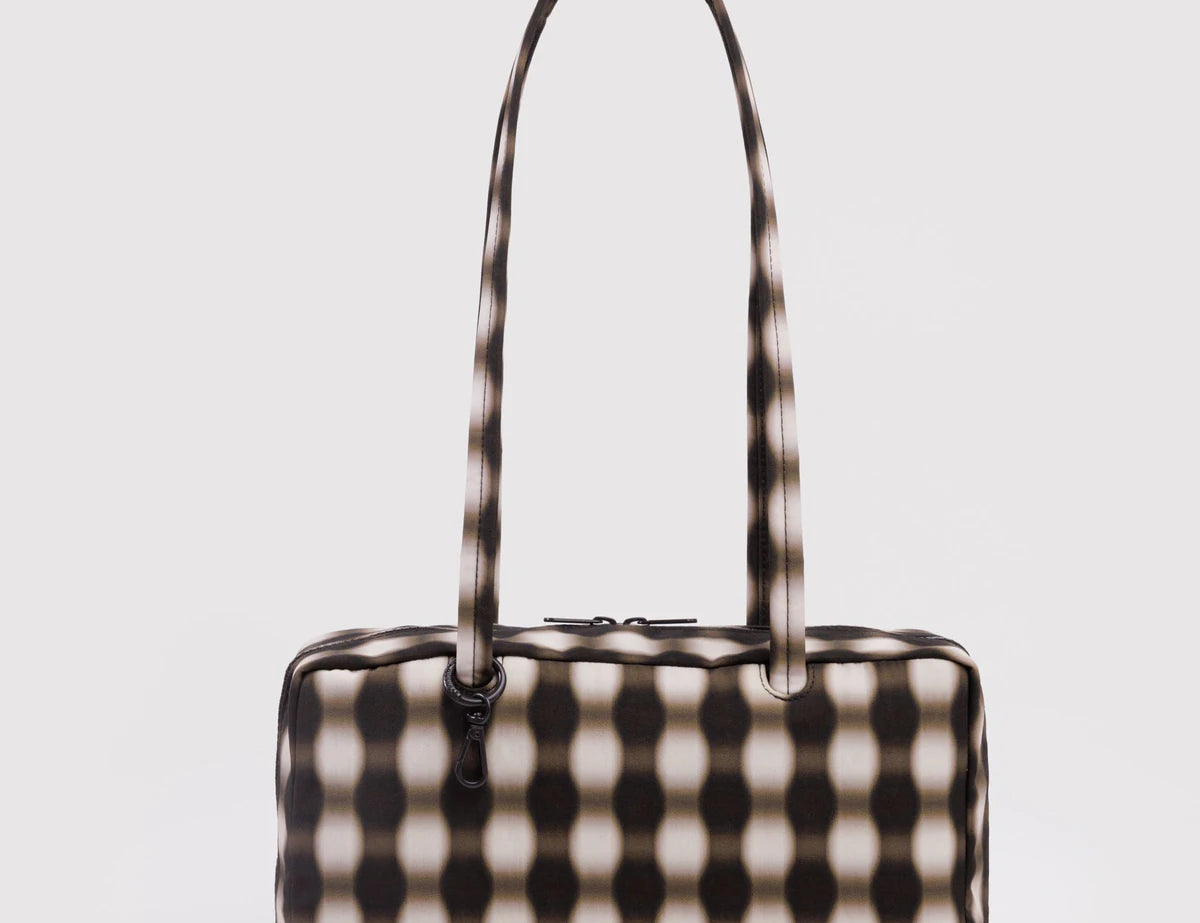 Nylon Bowler Bag - Blurred Gingham Brown | BAGGU