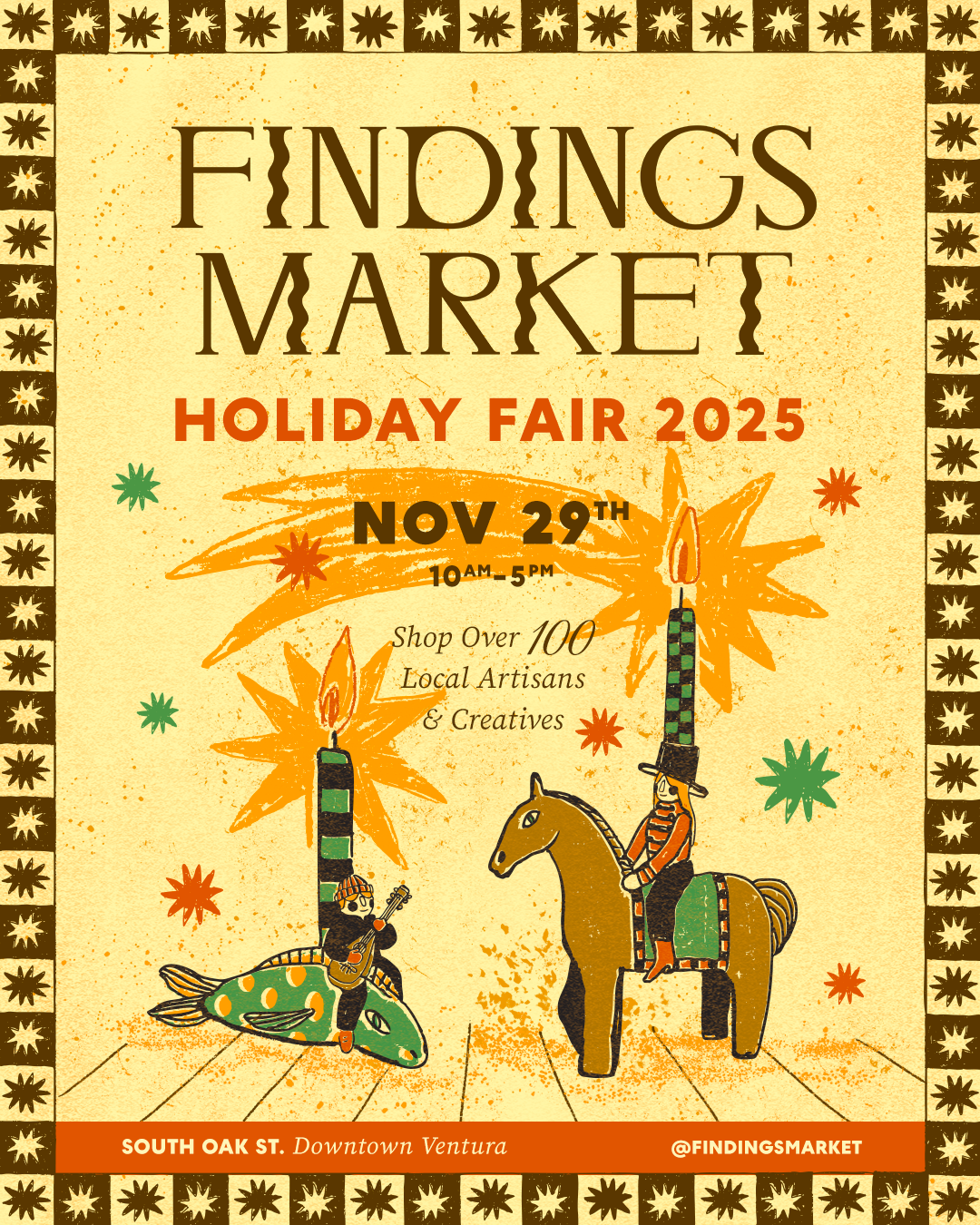 The Findings Market Holiday Fair is back in Downtown Ventura on Small Business Saturday. Happening November 29th ~ 10am-5pm!