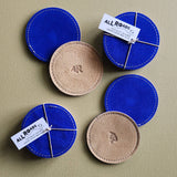 Double-sided suede coasters. One side of the coaster is Toast, the other side is light tan suede. Set of 4. 4" round.
