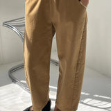 These are the pants we love to live in! She has thoughtful design details like an elastic high waist that gives you a room to breath, slightly curved leg shape, cropped length to show off your favorite socks and shoes, unique side panels and deep pockets. The heavy-weight canvas material likely adds durability and gives them a structured look.