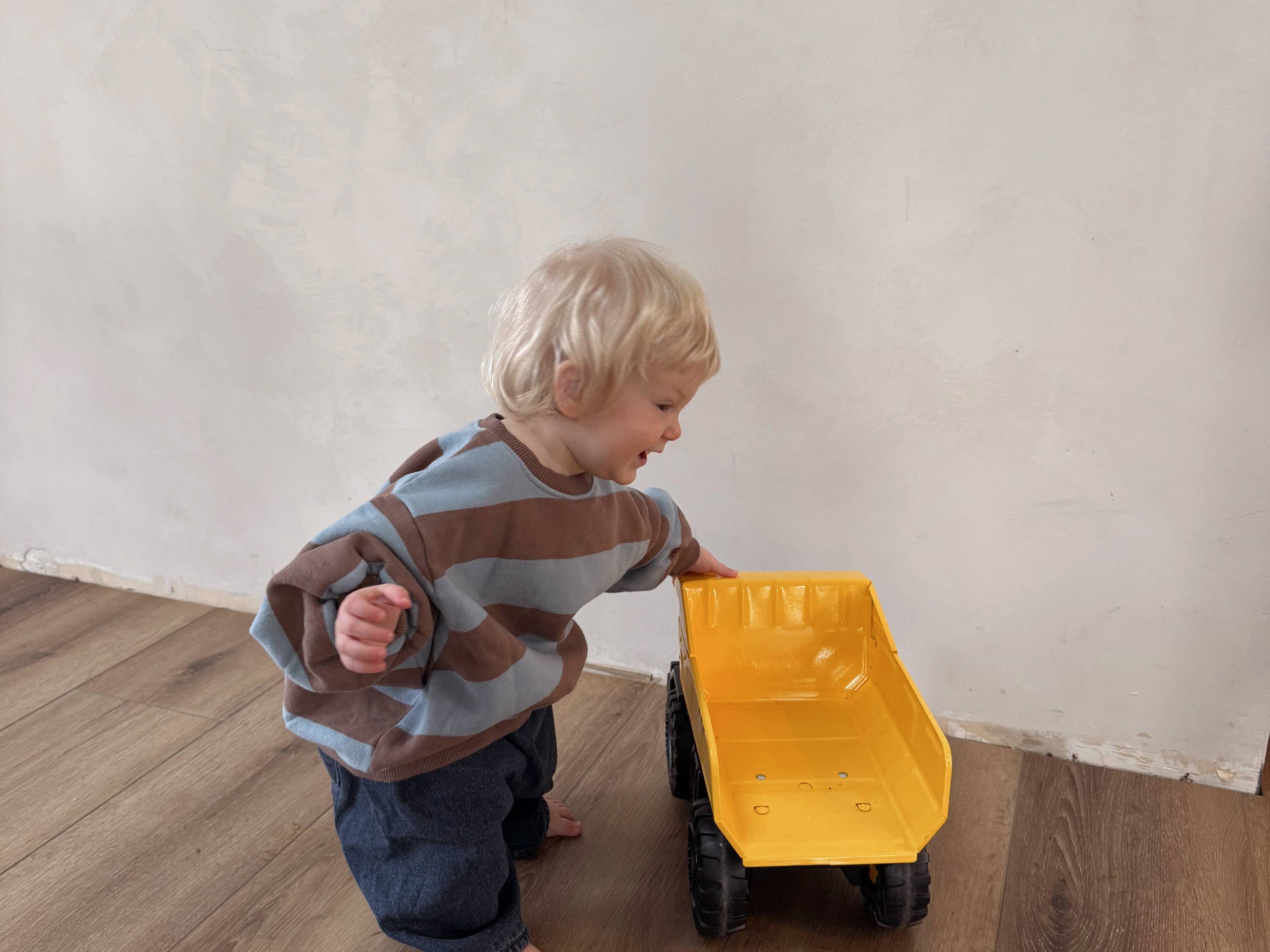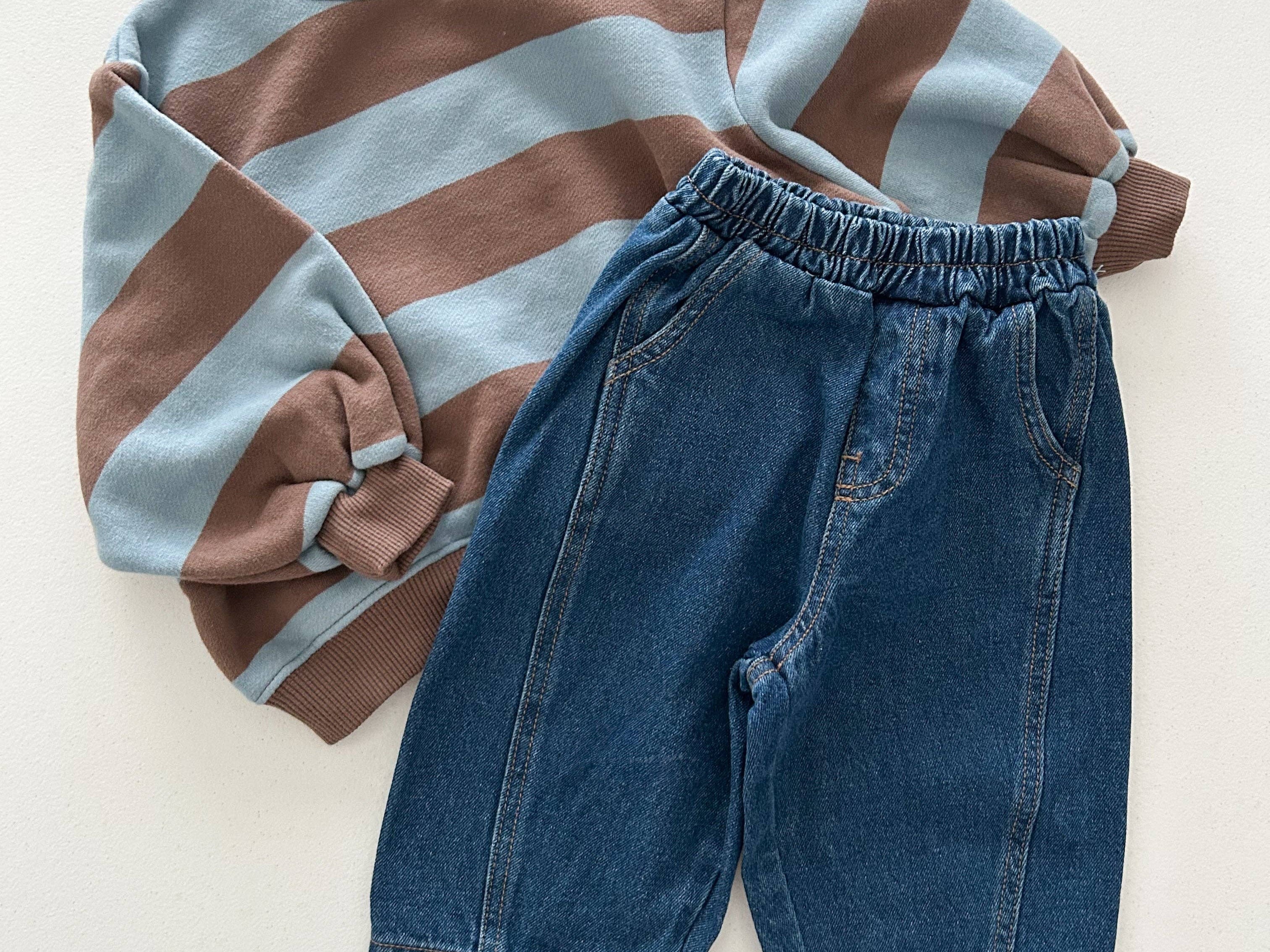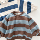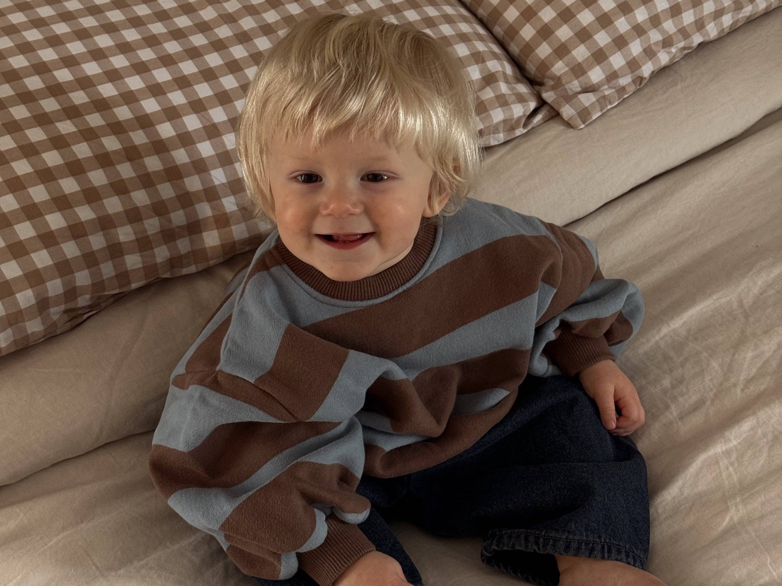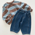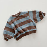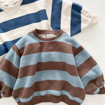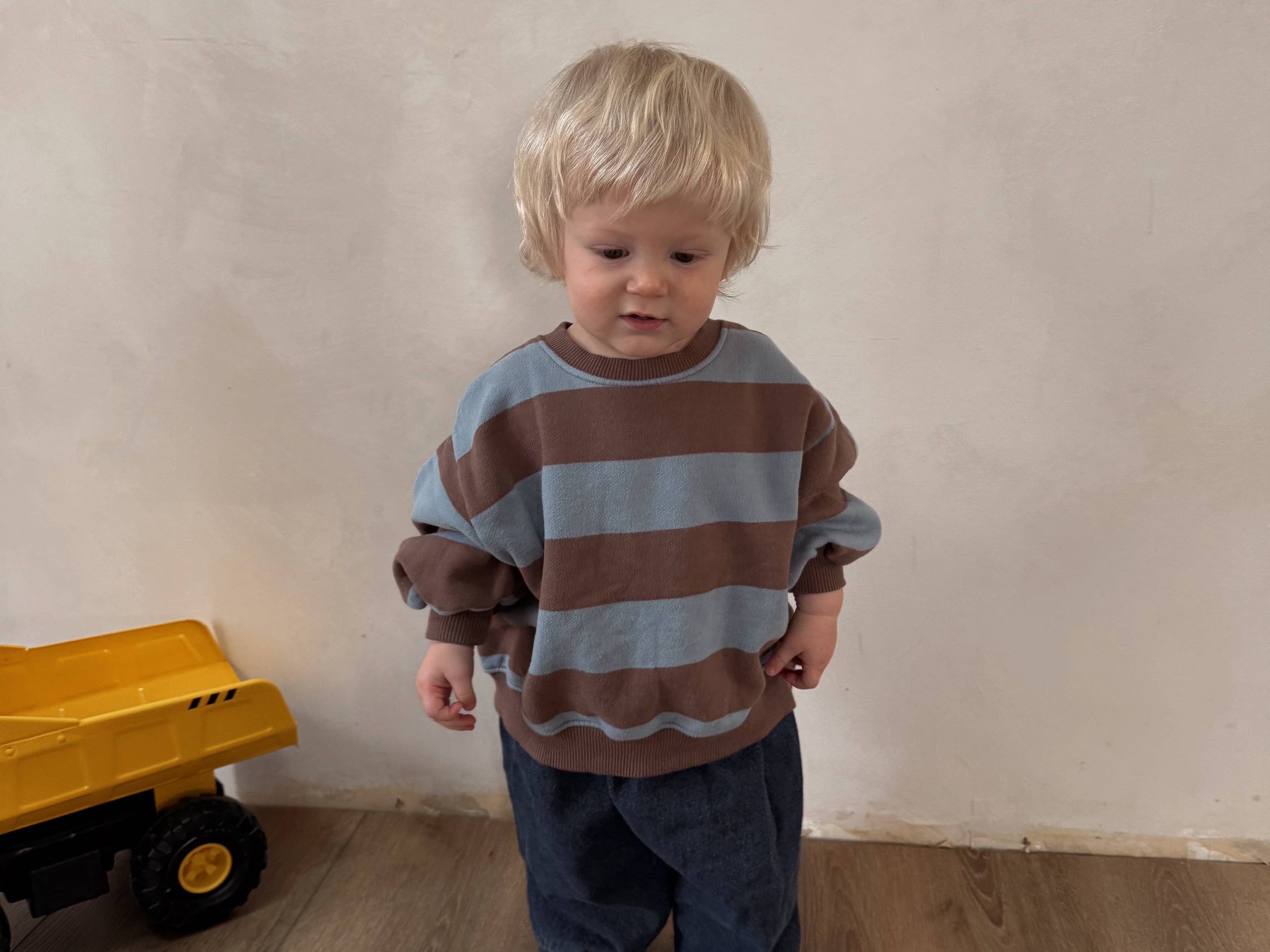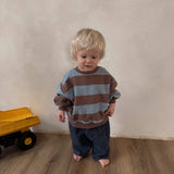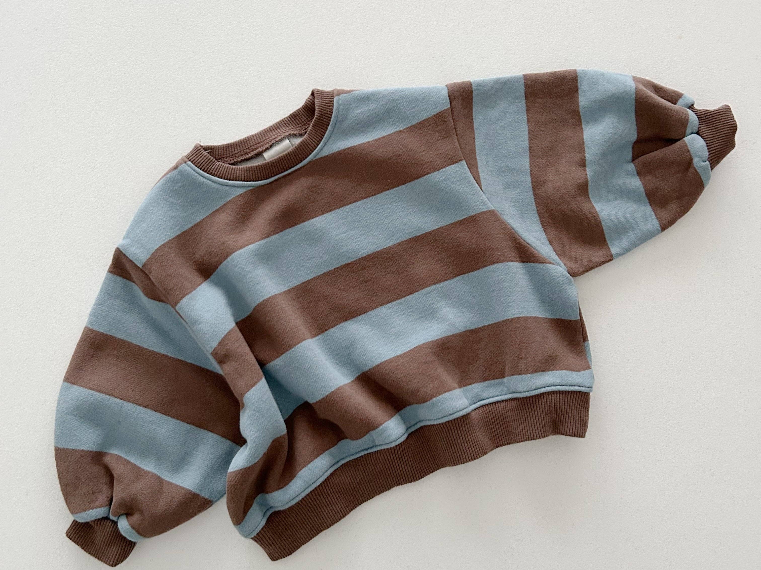 At Noon - Toddler Oversized Brushed Cotton Stripe Sweatshirt - Sky Brown