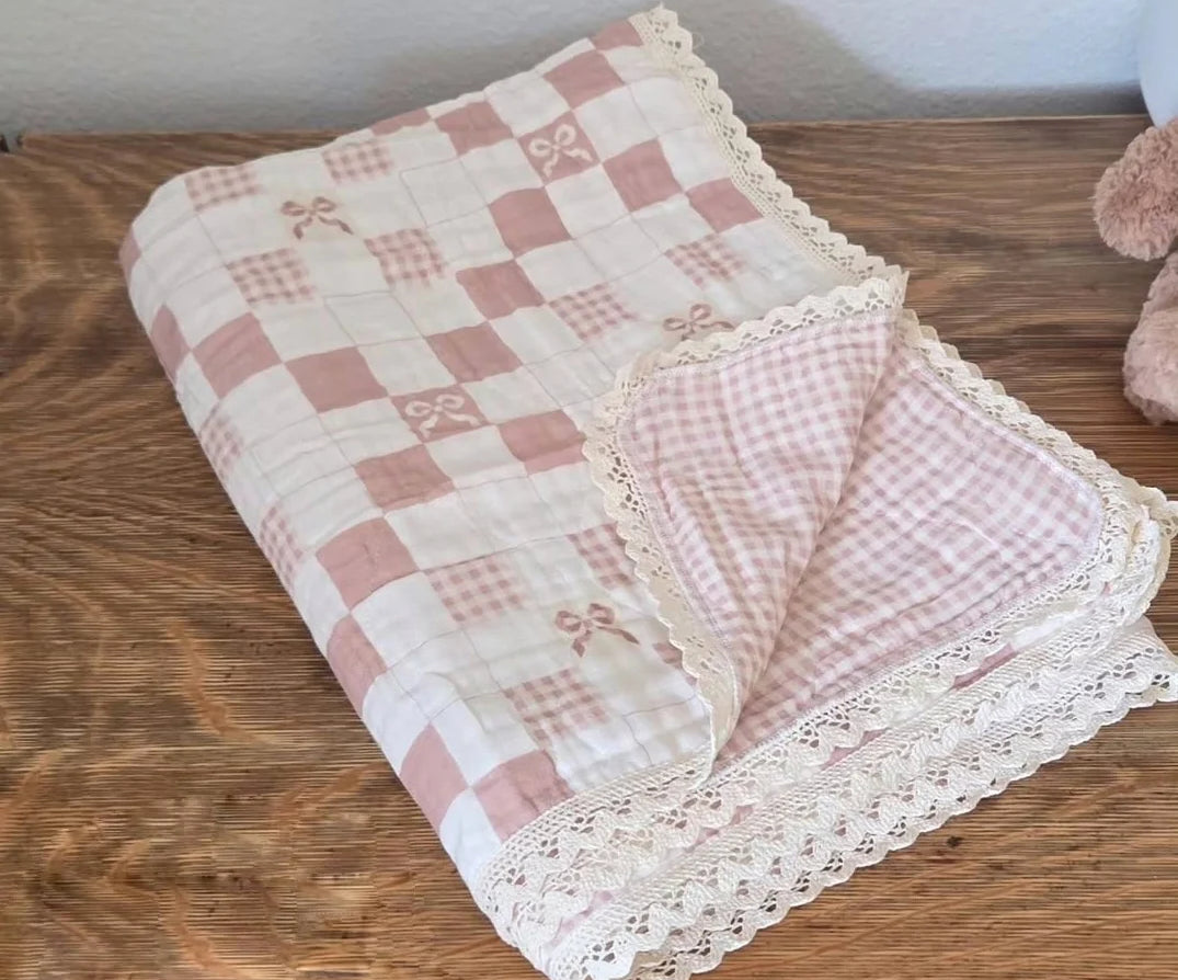 Big Kid Blanket- Pink Bows and Gingham - ELLIE + LAYNE