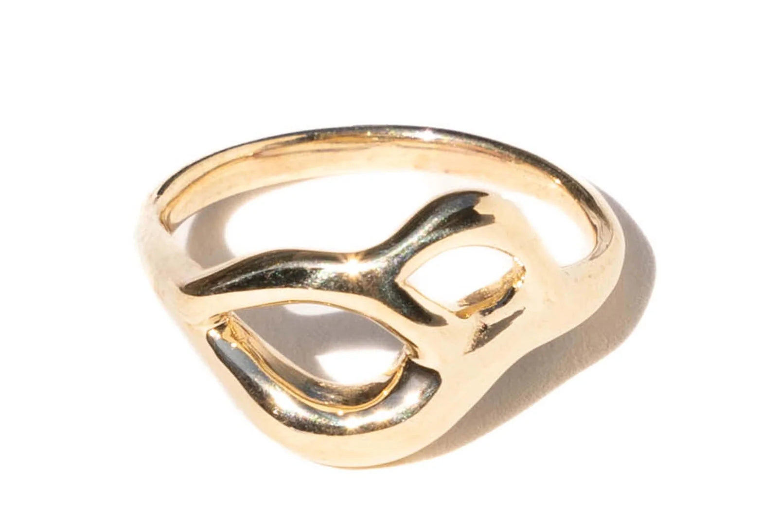 Hand carved and cast with a high polished mirror finish. Available in solid brass, sterling silver, or gold. Ring measures 13mm at widest point.