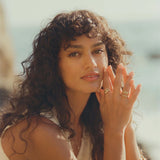 A note on brass rings: The copper in brass rings can react to your ph levels, body sweat, and lotions, causing the area where the ring rests on your finger to turn green. This is harmless and natural. You can apply clear nail polish on the inside to act as a barrier between the metal and your skin. Keep your hands clean, dry, and remove pieces when washing or applying products to keep your ring looking its best.