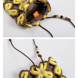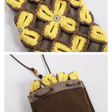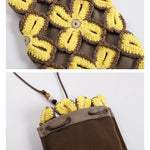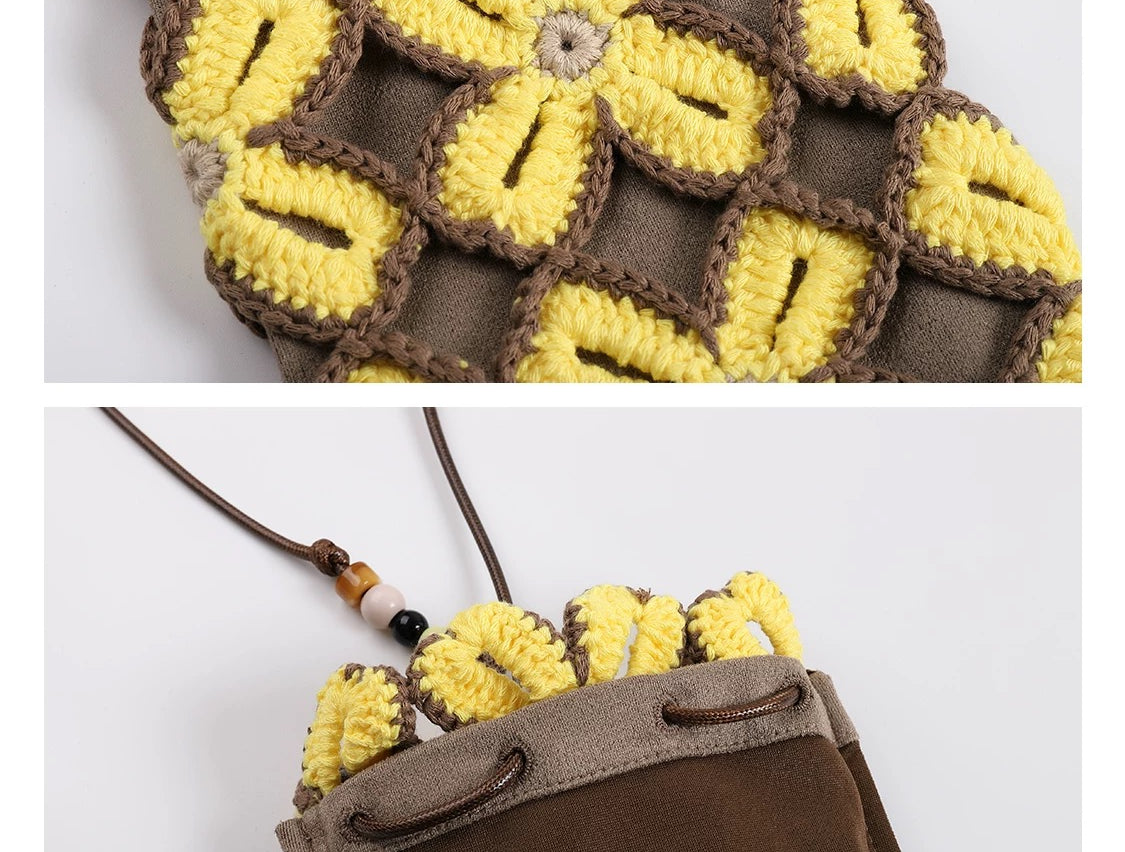 Lucky clover crochet crossbody bag | Brown/Yellow -MINIEGG GOODS