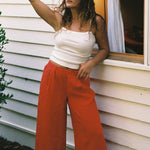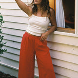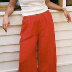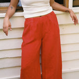 Your best friend in pant form. A simple linen wide leg pant with an elasticated waistband and medium rise. Our heavy weight linen is perfect for year-round layering. Details: - Turned back wide cuff - Wide Leg - Garment washed and pre-shrunk 100% Linen