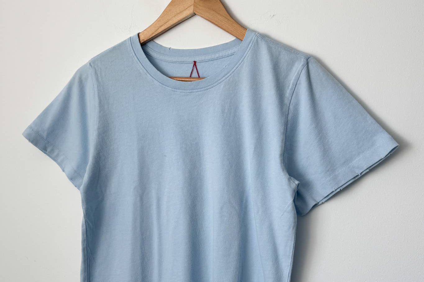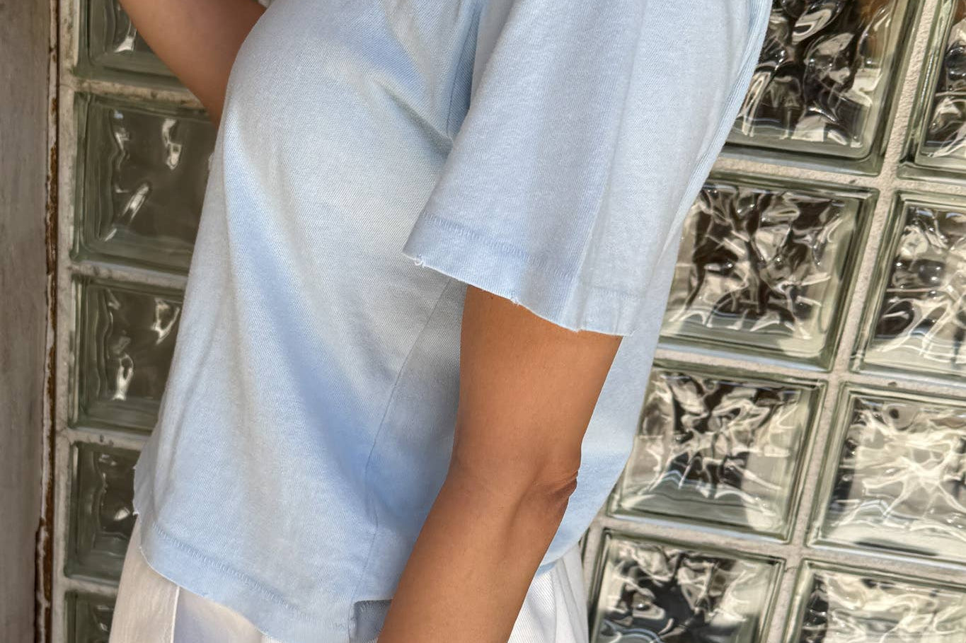 Why We Made This? Meet the Darling Tee — It features a relaxed boxy silhouette that hits the perfect waist length, it offers gently distressed details and a 90's fade for a true vintage allure. Crafted from locally sourced cotton, this tee combines a light, airy feel with a beautifully structured yet soft touch, giving you the vintage feel you long for. We used the softest local 100% cotton* low gauge knit. Garment washed and dyed each tee for a beautiful natural worn-in look. Fabric and garments are made in Made in Los Angeles, USA Content: 100% Cotton