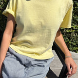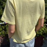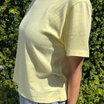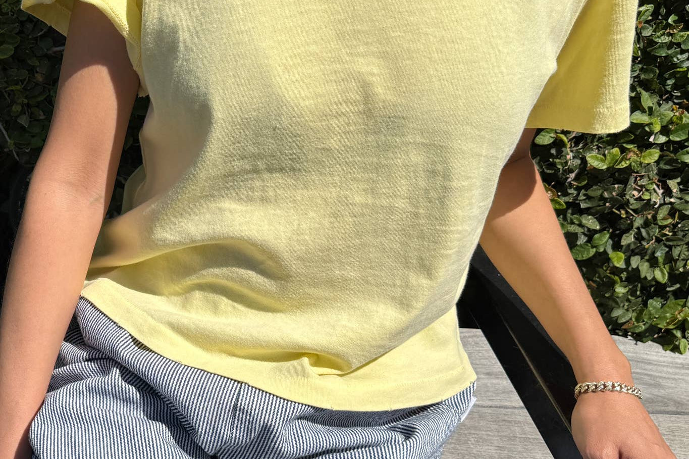 Why We Made This? Meet the Darling Tee — It features a relaxed boxy silhouette that hits the perfect waist length, it offers gently distressed details and a 90's fade for a true vintage allure. Crafted from locally sourced cotton, this tee combines a light, airy feel with a beautifully structured yet soft touch, giving you the vintage feel you long for. We used the softest local 100% cotton* low gauge knit. Garment washed and dyed each tee for a beautiful natural worn-in look. Fabric and garments are made in Made in Los Angeles, USA Content: 100% Cotton