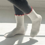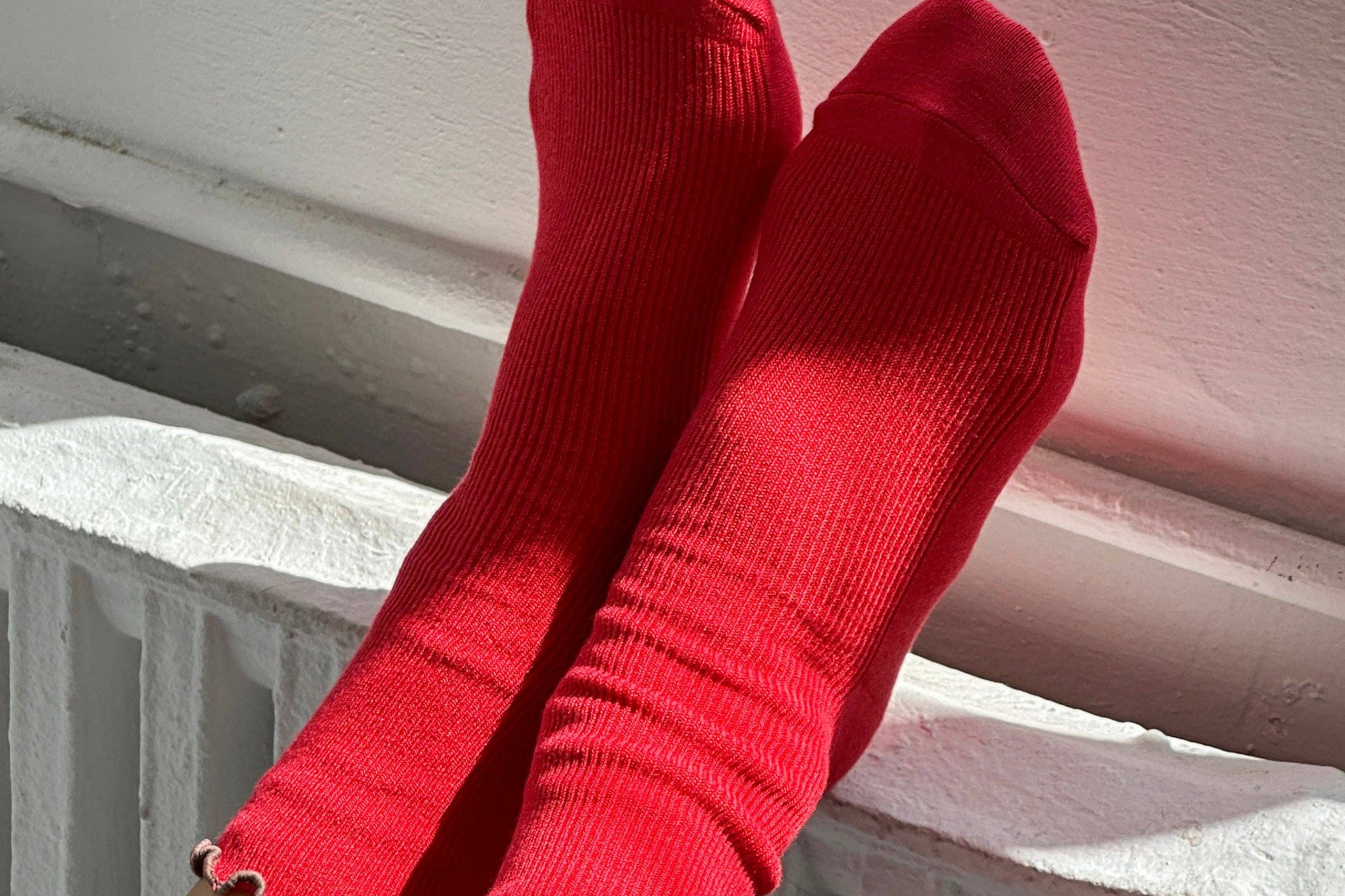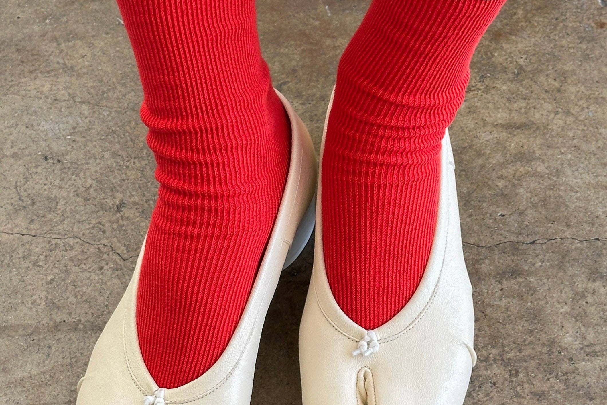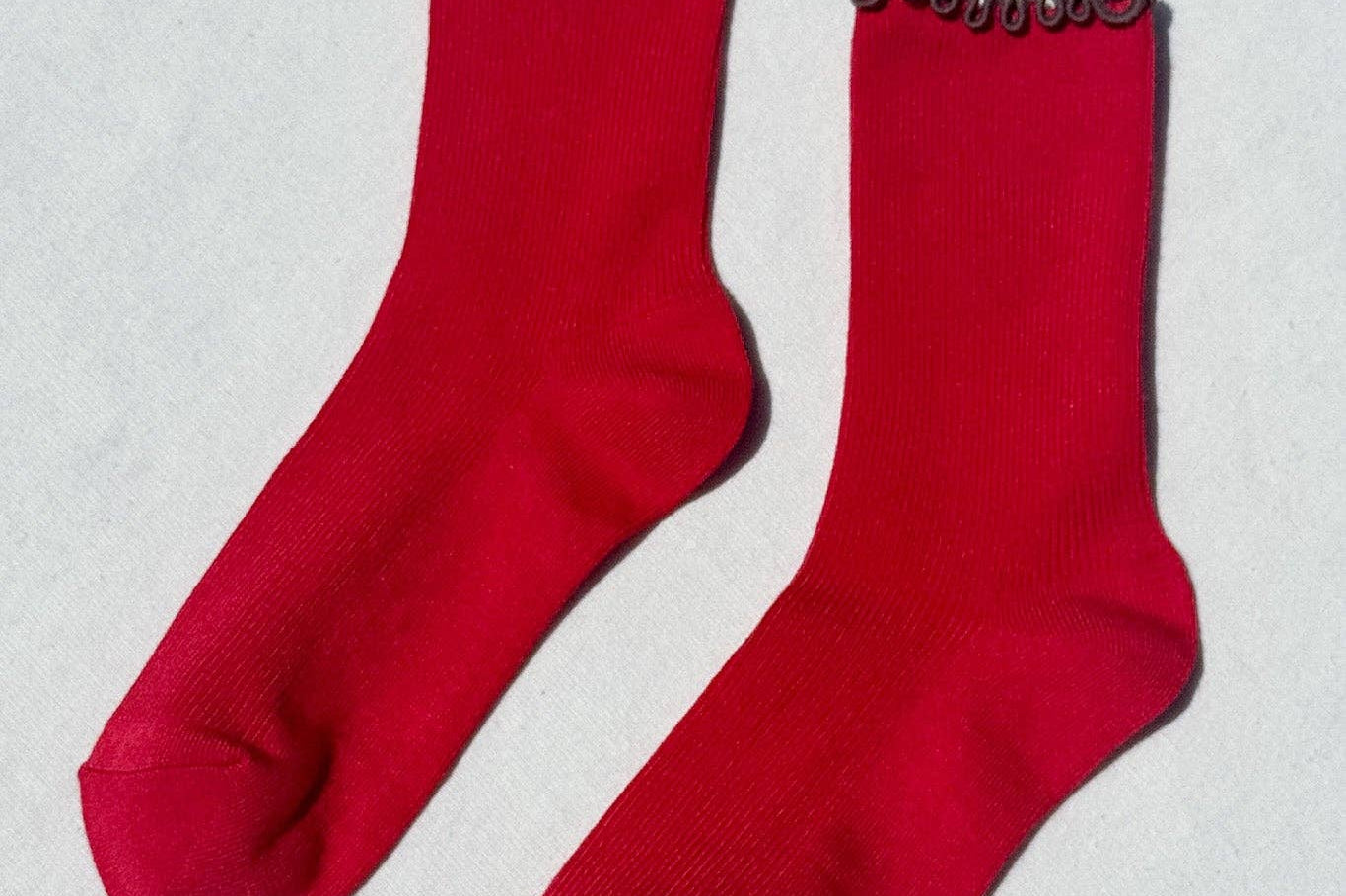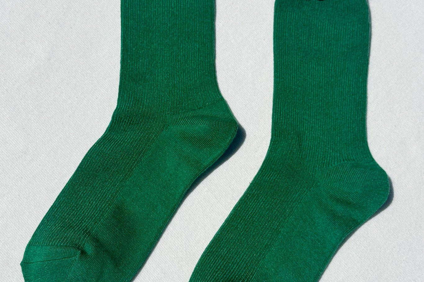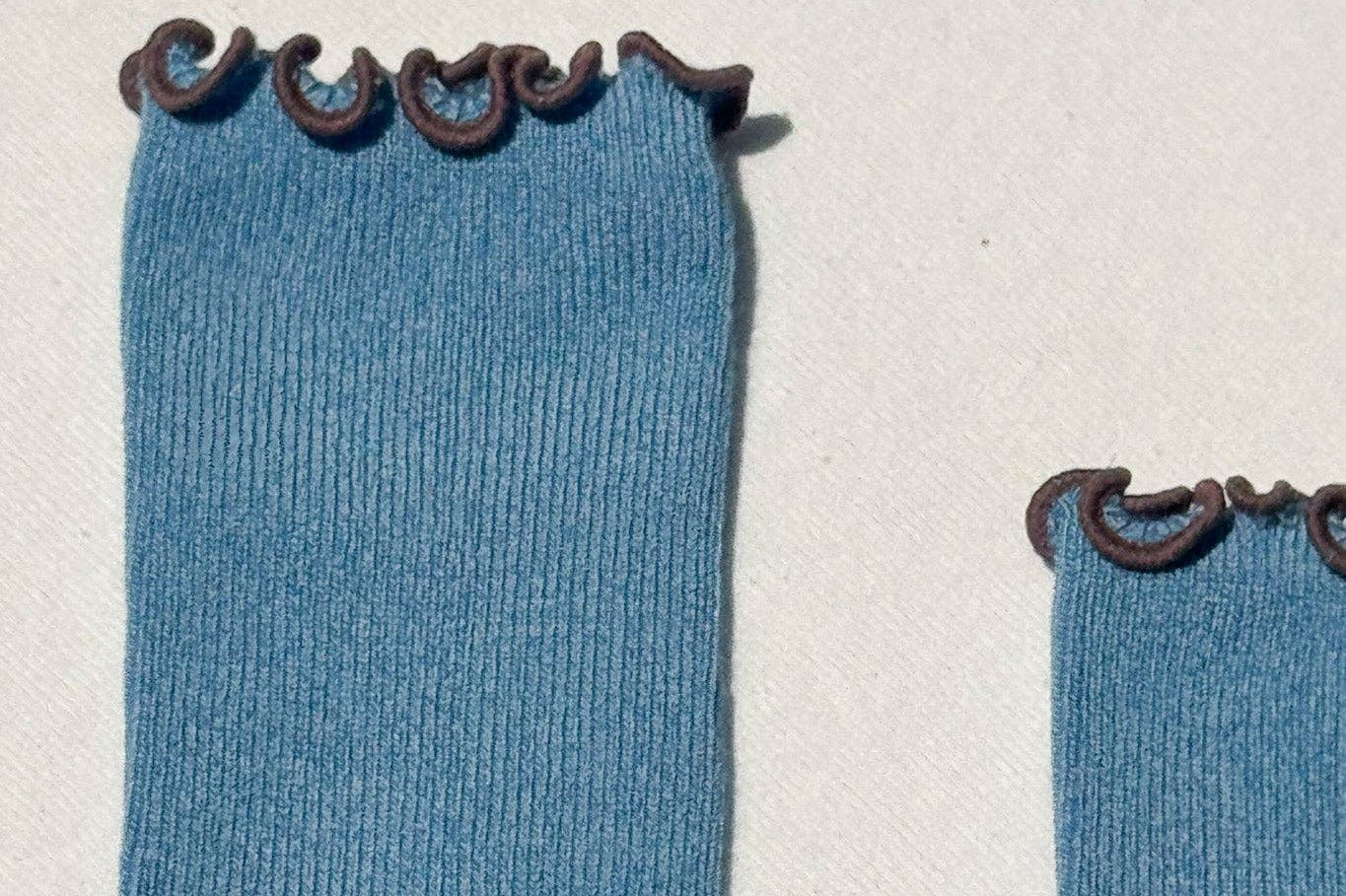 Why We Made This? Noble x Le Bon Shoppe — A sock born from our shared love of slow fashion, good design, and color combos that go with literally everything. The Ruffled Modal Socks feature a baby rib texture with a playful lettuce-edge ruffle at the top. Their versatile crew length makes them perfect worn long or scrunched down. Made in South Korea Contents: 80 modal 18 polyester 2 spandex Sizing: One size fits most (US women's size 6-10) Care Instructions: Machine wash cold Tumble dry low Do not iron Do not bleach