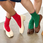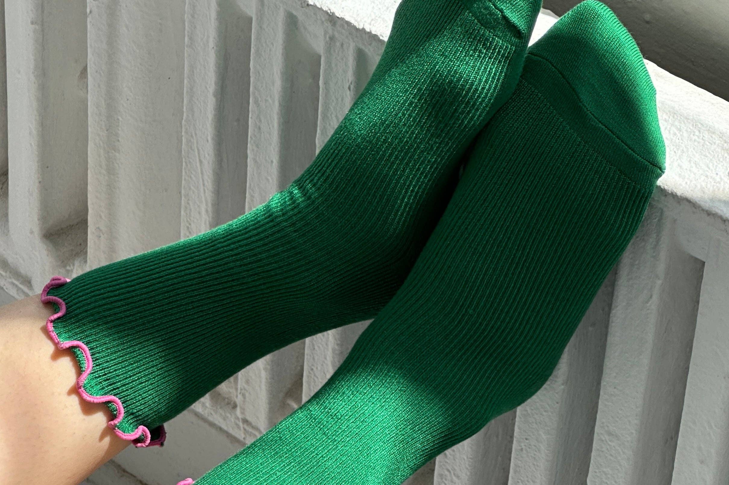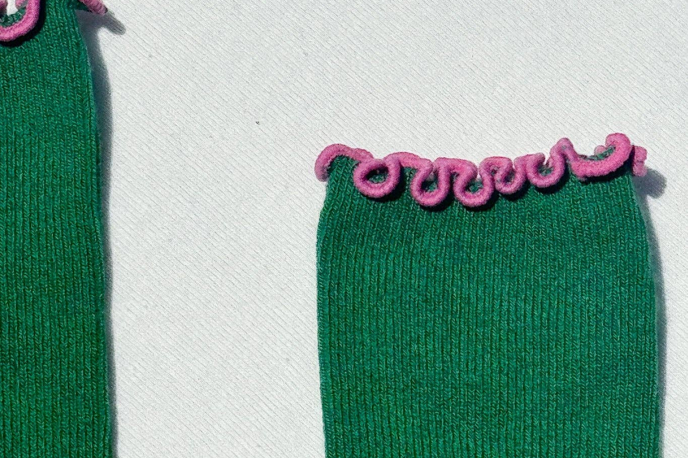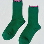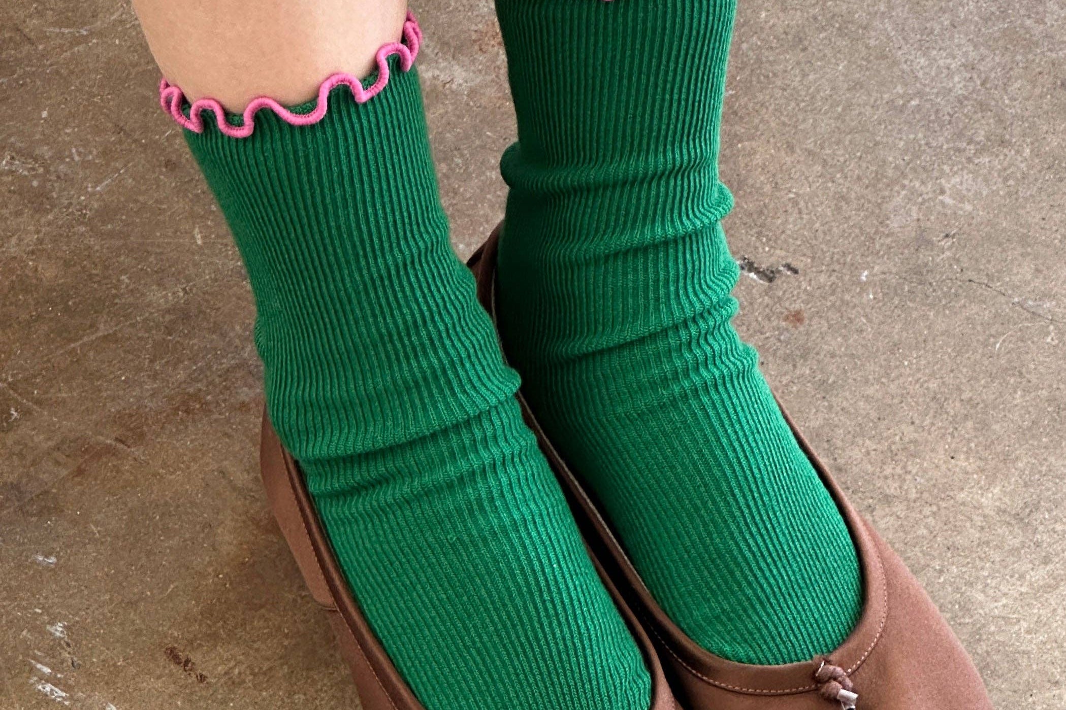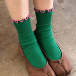 Le Bon Shoppe - Ruffled Modal Socks: SPINACH / PINK EDGE
