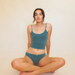Our perfect underwear brief lives where modest meets sexy. Flattering low rise undies designed with every body in mind. Our signature soft, breathable organic cotton provides comfort all day. Each underwear is full coverage and is designed to highlight your natural curves. They feature lace trim and a satin rosebud at the center.