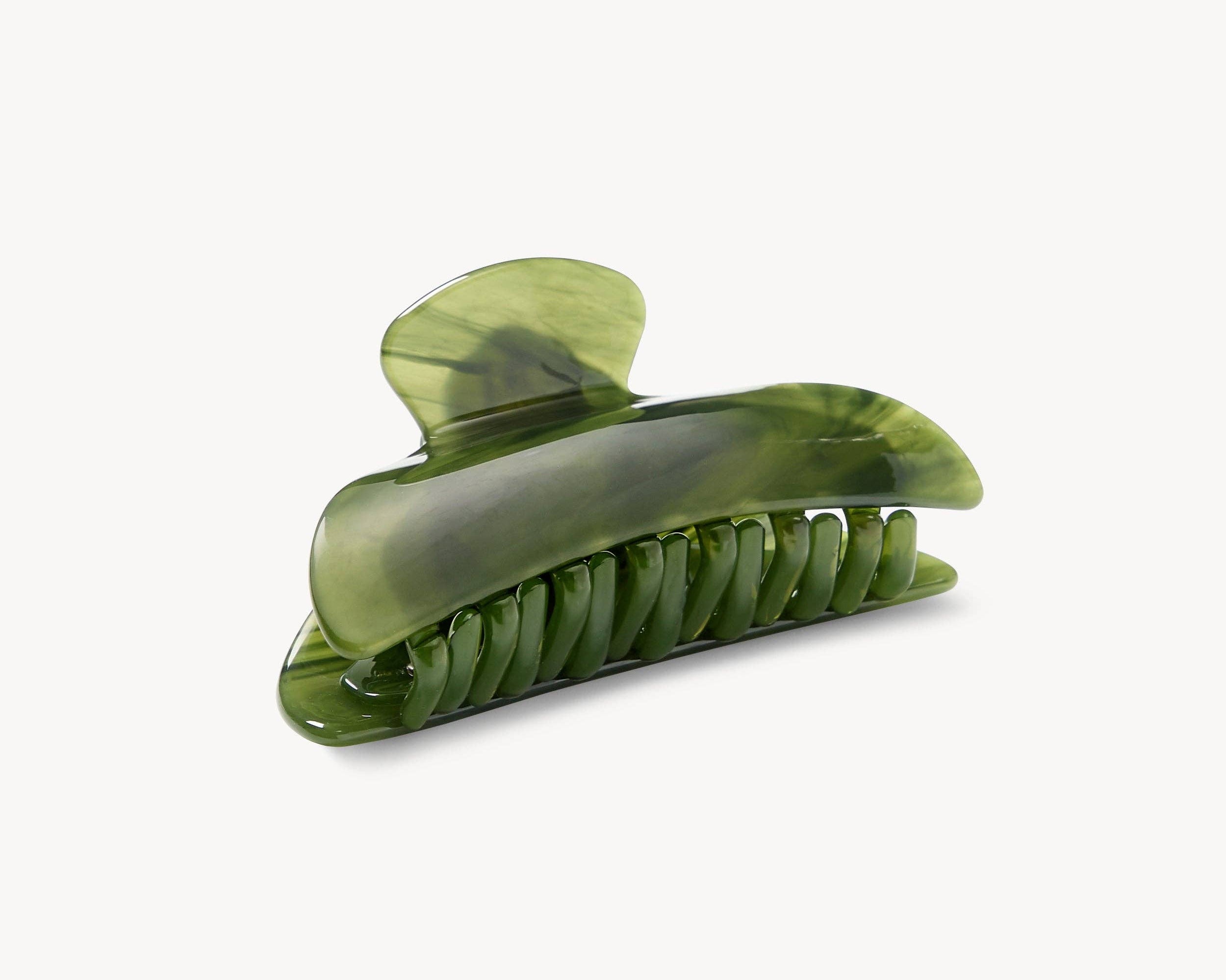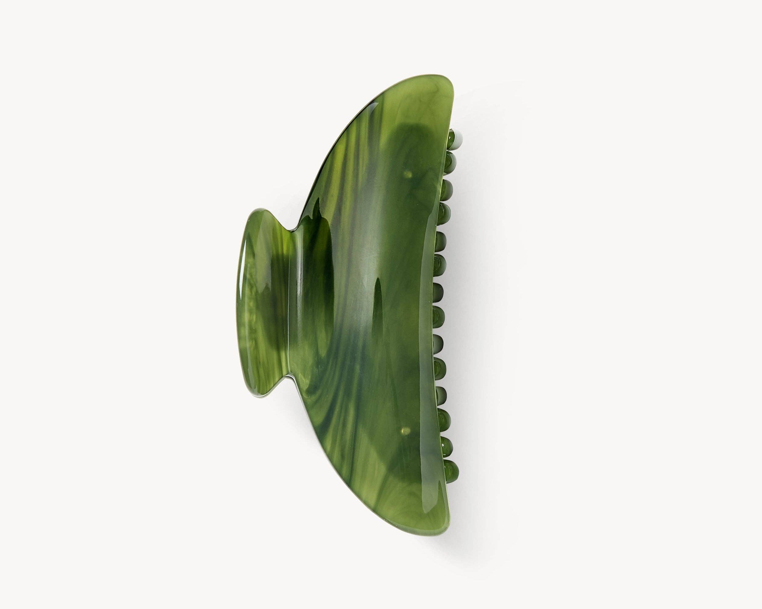 A double-walled hair claw designed to hold medium volumes of hair, handcrafted from Italian acetate with reinforced hardware. Recommended for all hair types and textures.
