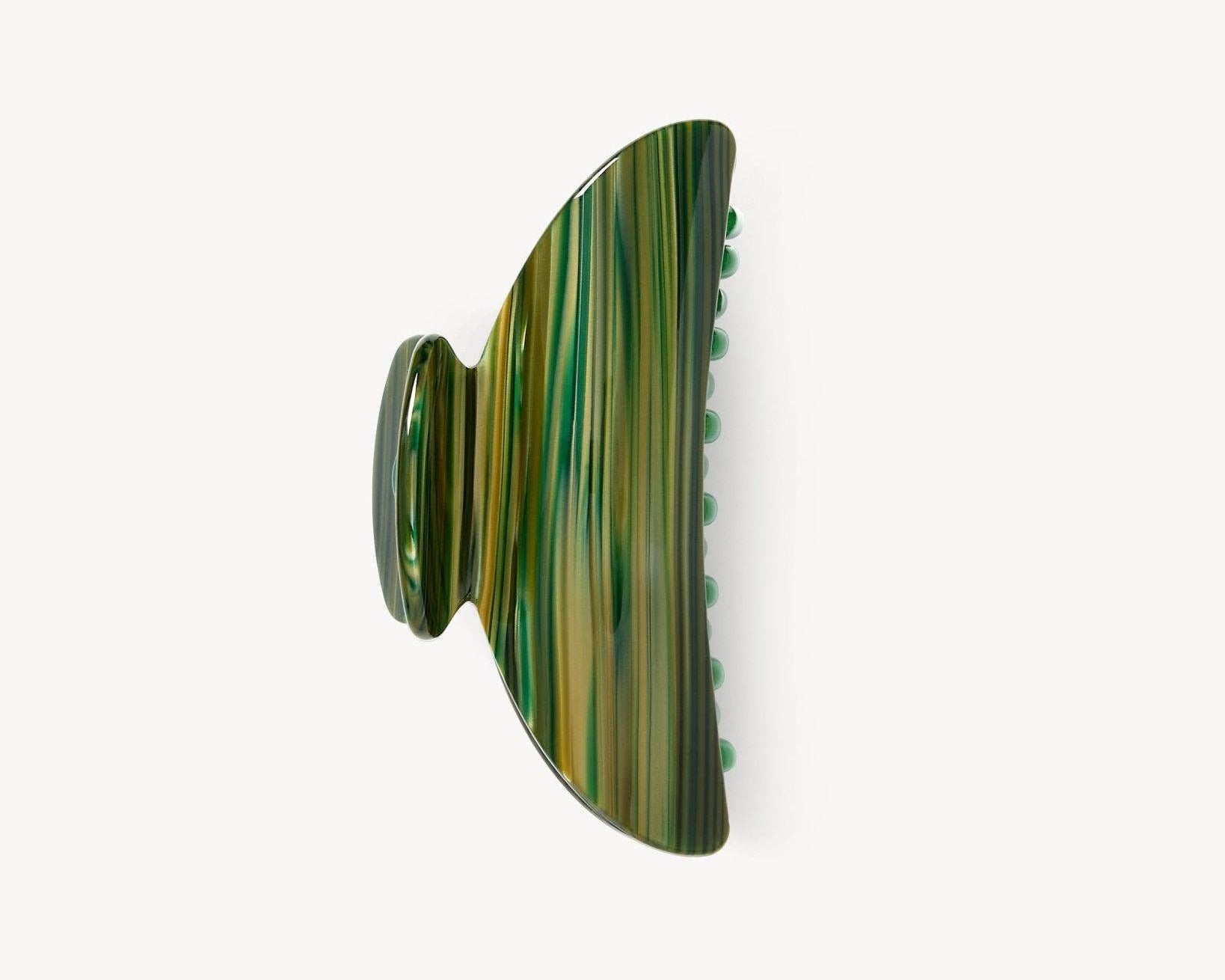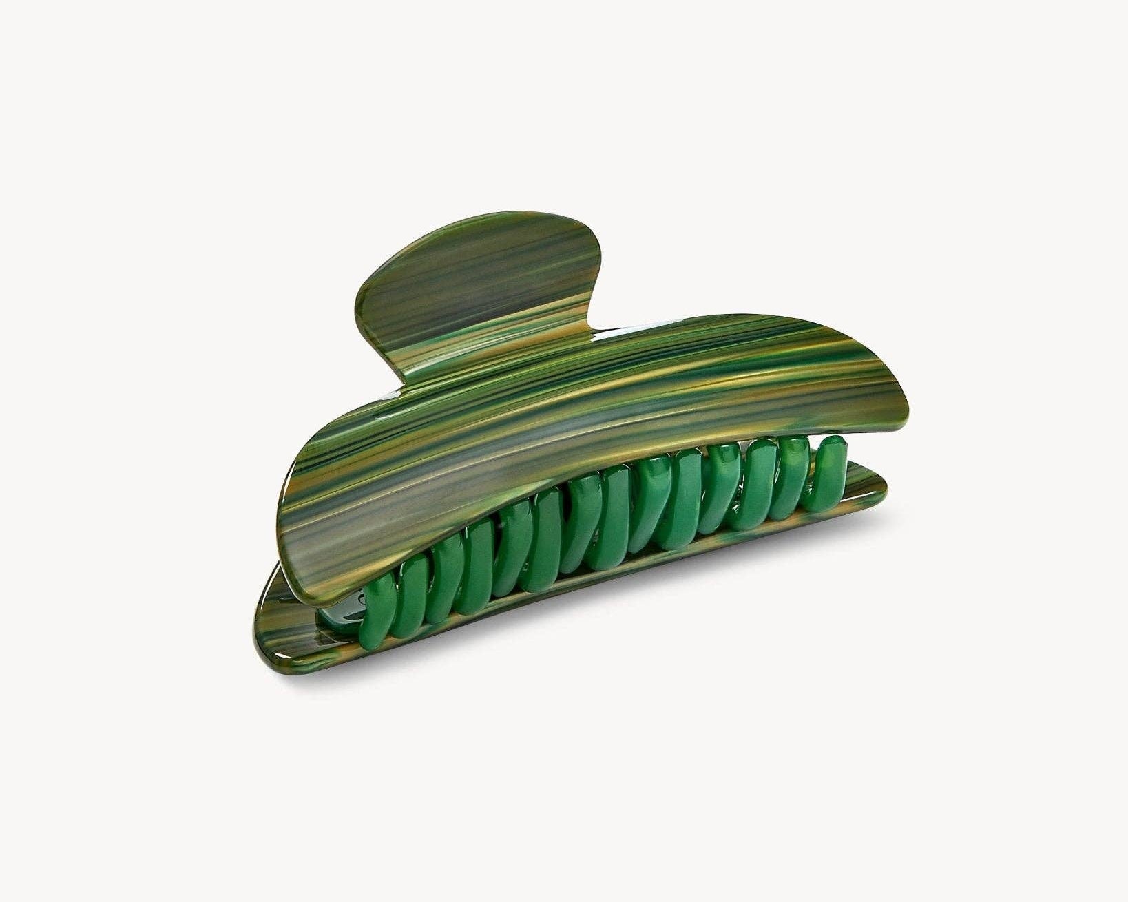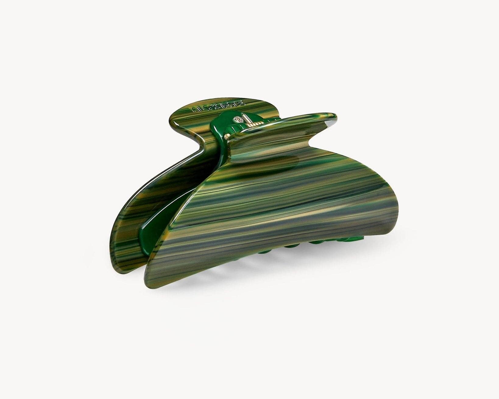 A double-walled hair claw designed to hold medium volumes of hair, handcrafted from Italian acetate with reinforced hardware. Recommended for all hair types and textures.