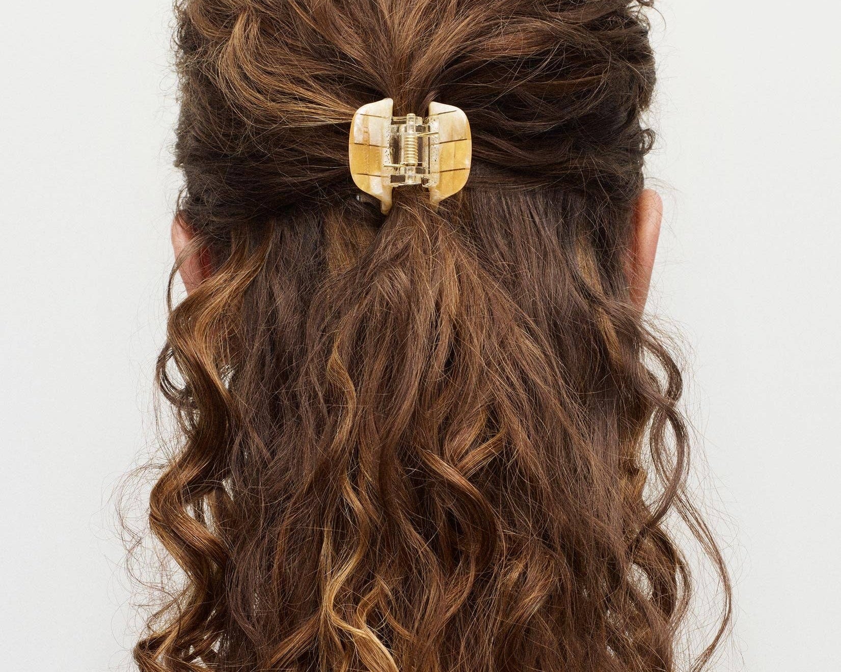 A handcrafted mini claw clip designed to securely and gently hold hair. Made from our Italian bio-acetate and recommended for all hair types and textures.