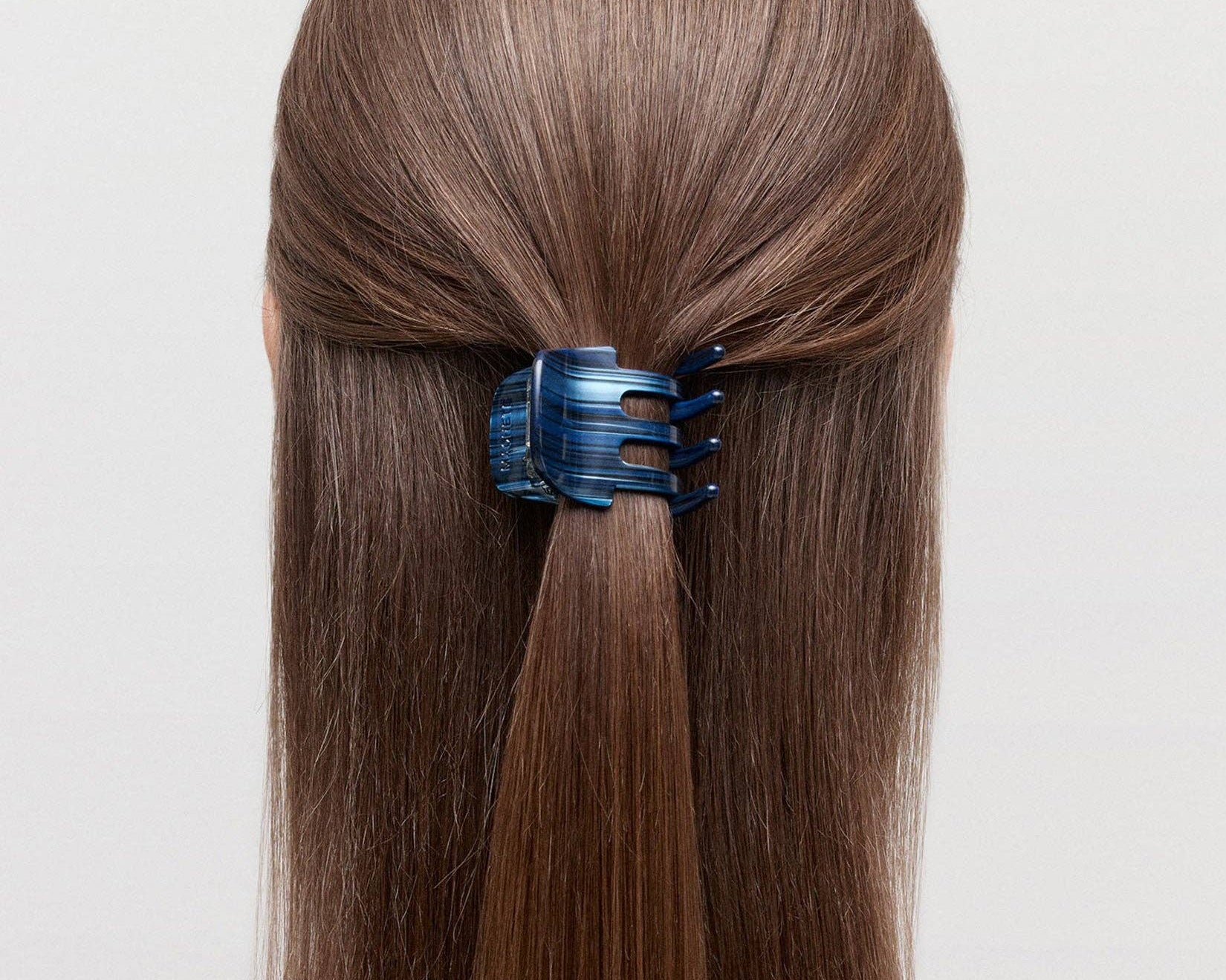 A handcrafted mini claw clip designed to securely and gently hold hair. Made from our Italian bio-acetate and recommended for all hair types and textures.