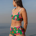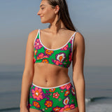 With thin adjustable straps and binding covering the interior seams for extra support, the Maggie is your new "comfy but cute" top you'll wear from the surf to yoga to everywhere in between.