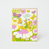 Itty bitty fairy birthday wishes from amongst a flower field. All about this card: Comes with a kraft envelope. -Available in plastic sleeves AND plastic-free packaging, whichever works for you. -Dimensions: A2 (4.25 x 5.5 inches). -Designed by Phoebe Wahl.
