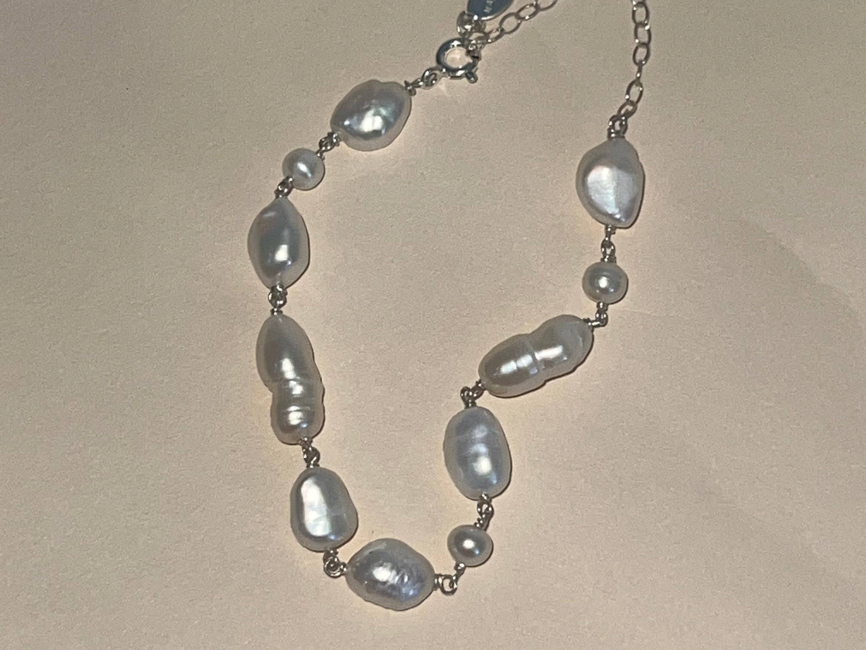 * A beautiful medley of various freshwater pearls wired wrapped together. * Pearls are about 6-8mm wide. * Metal: Sterling Silver