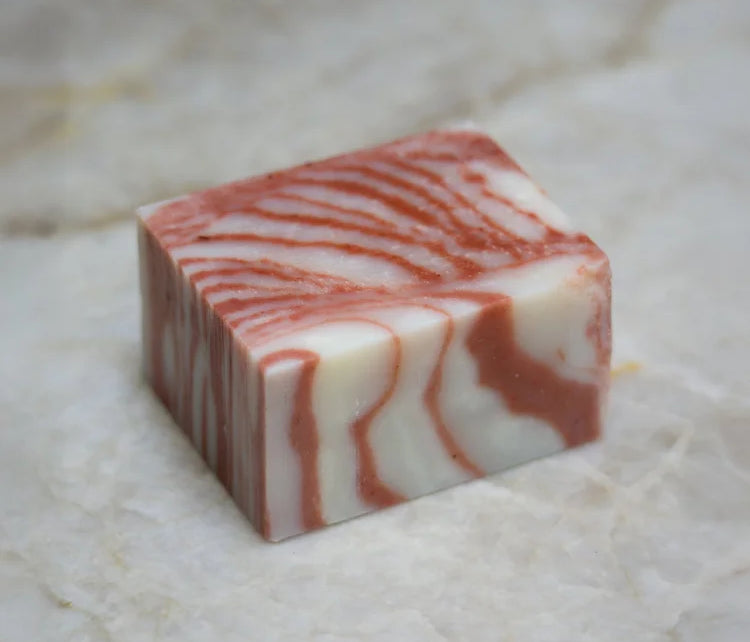 Creamy, gentle, skin-soothing bar made with rose clay, paprika and, as always, super-fatted with meadowfoam oil. Scented with Pelargonium graveolens essential oil - rosy and herbaceous.