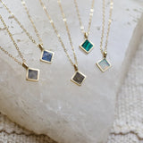 Delicate diamond charm pendant with inlay custom stone.