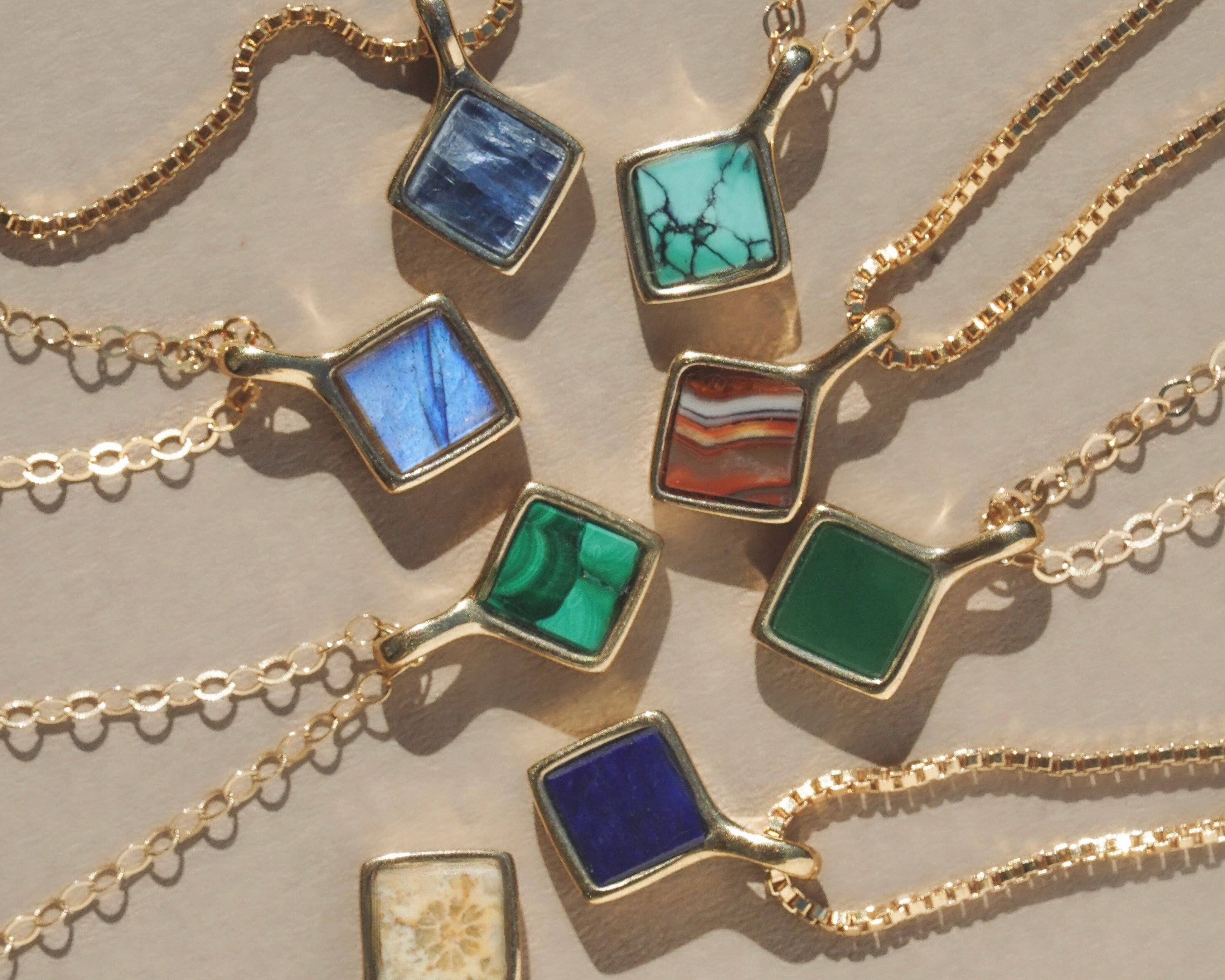 Each pendant is one of a kind and each stone is cut by hand.Â