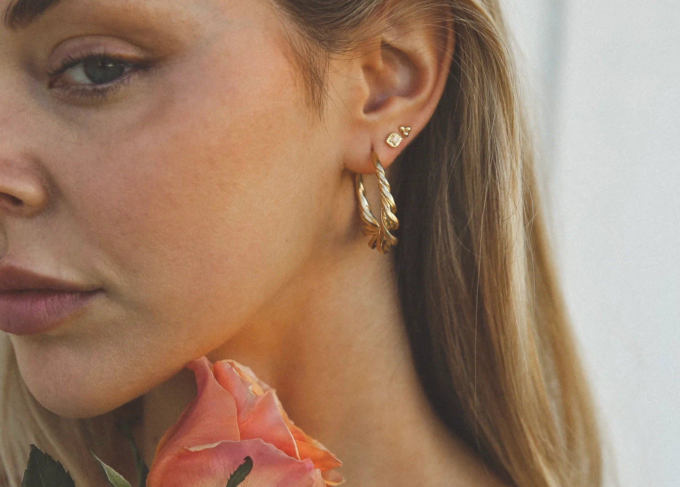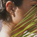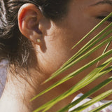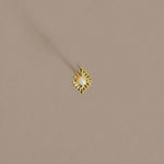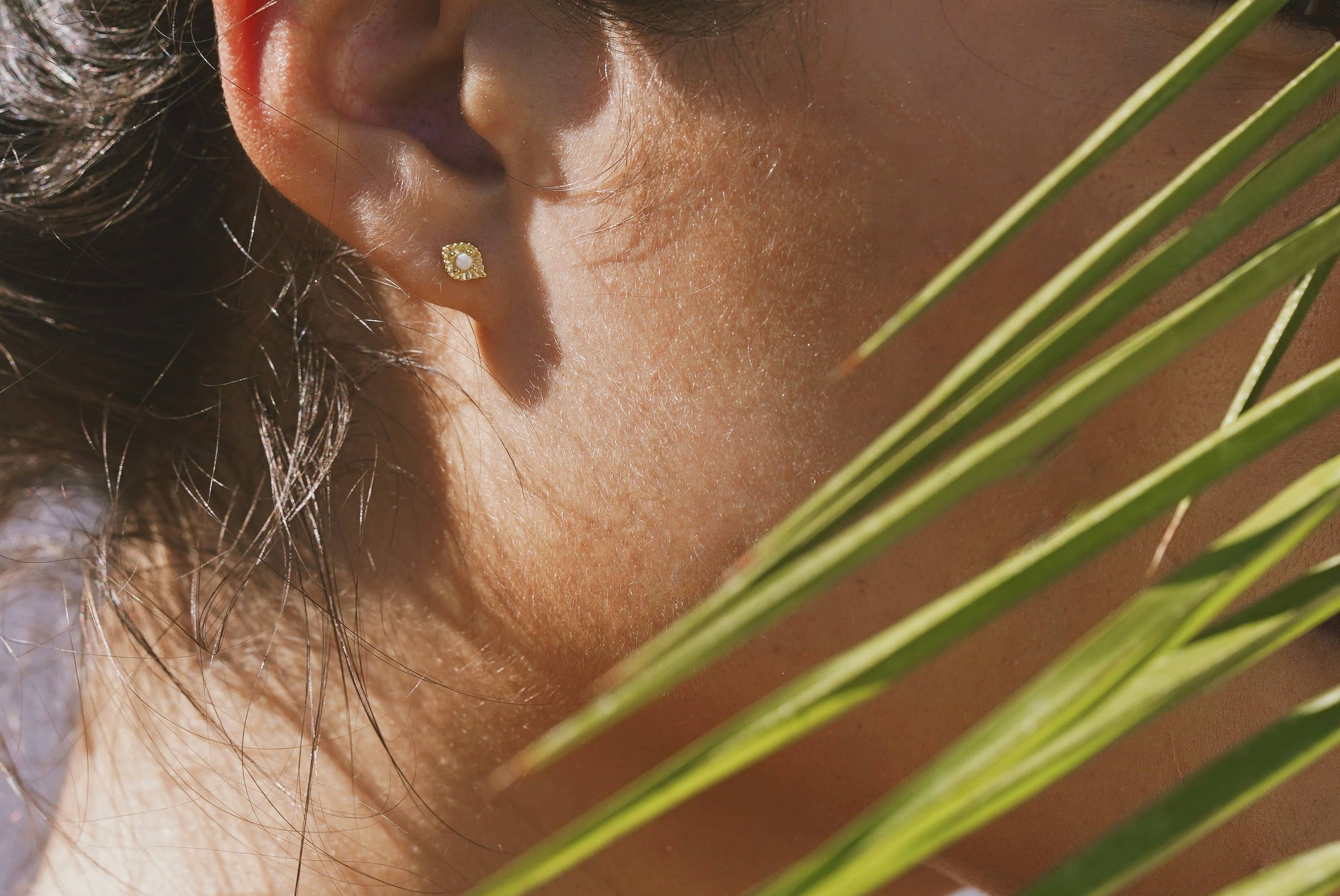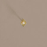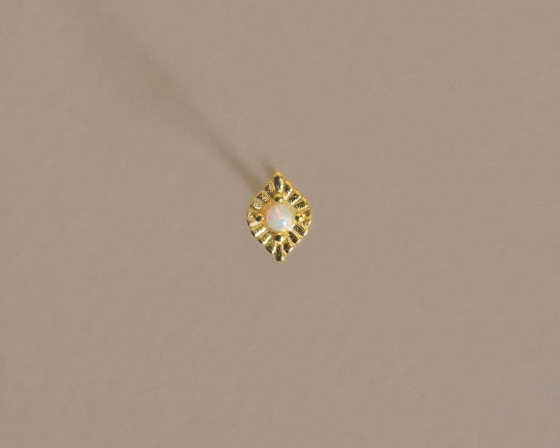 A lovely little handmade eye style stud that lays flat and boarders a vibrant prong set opal gem.