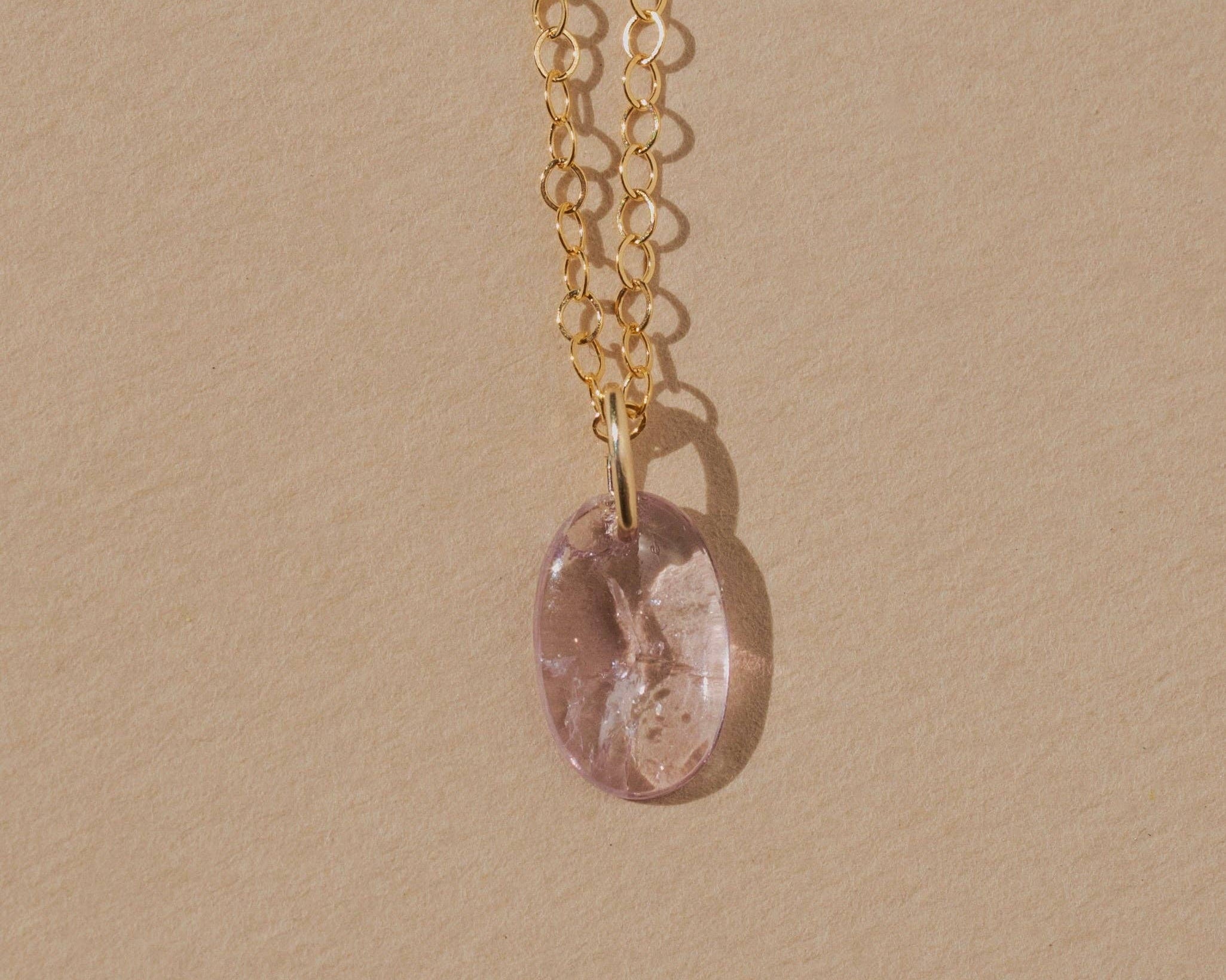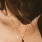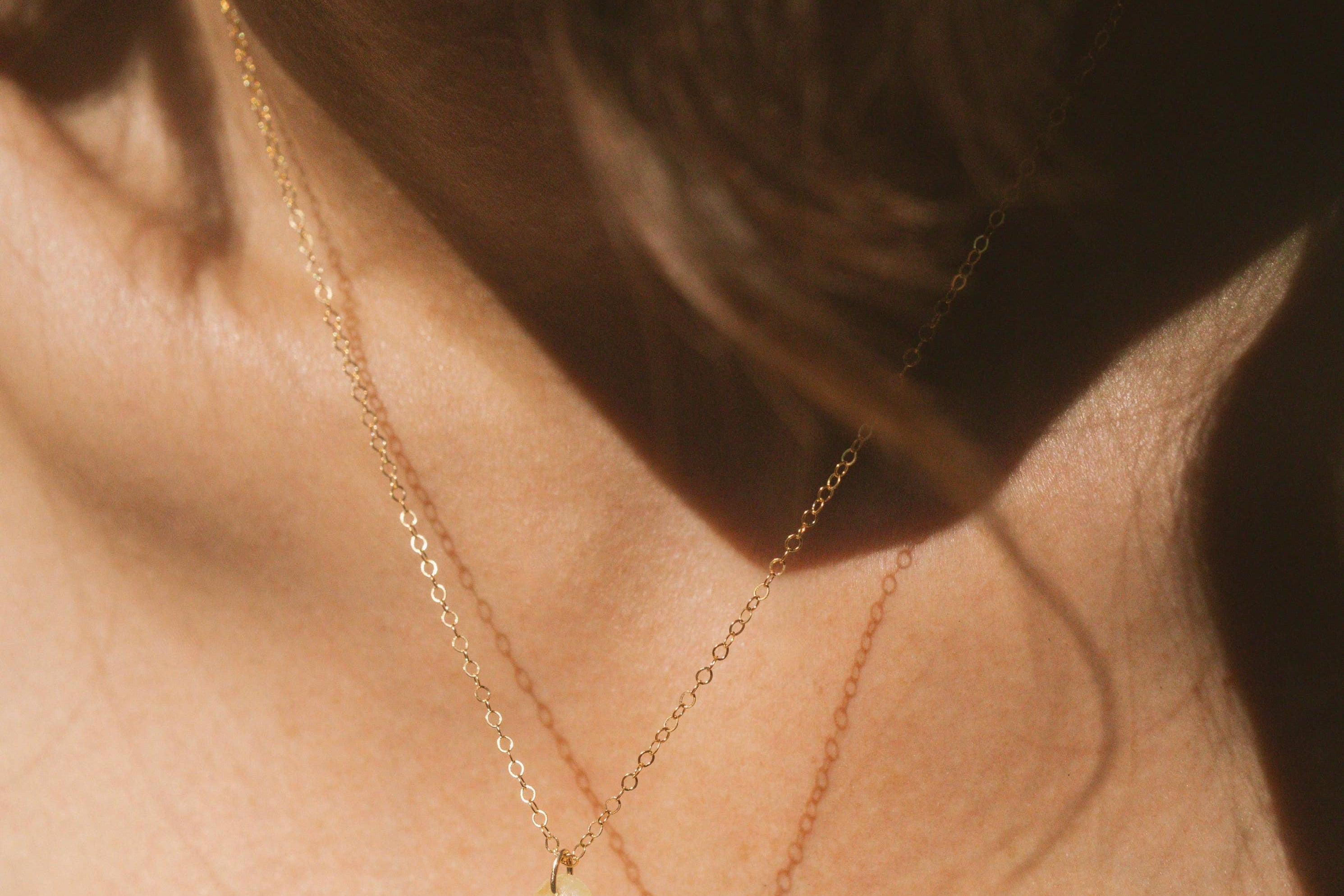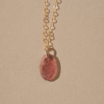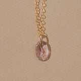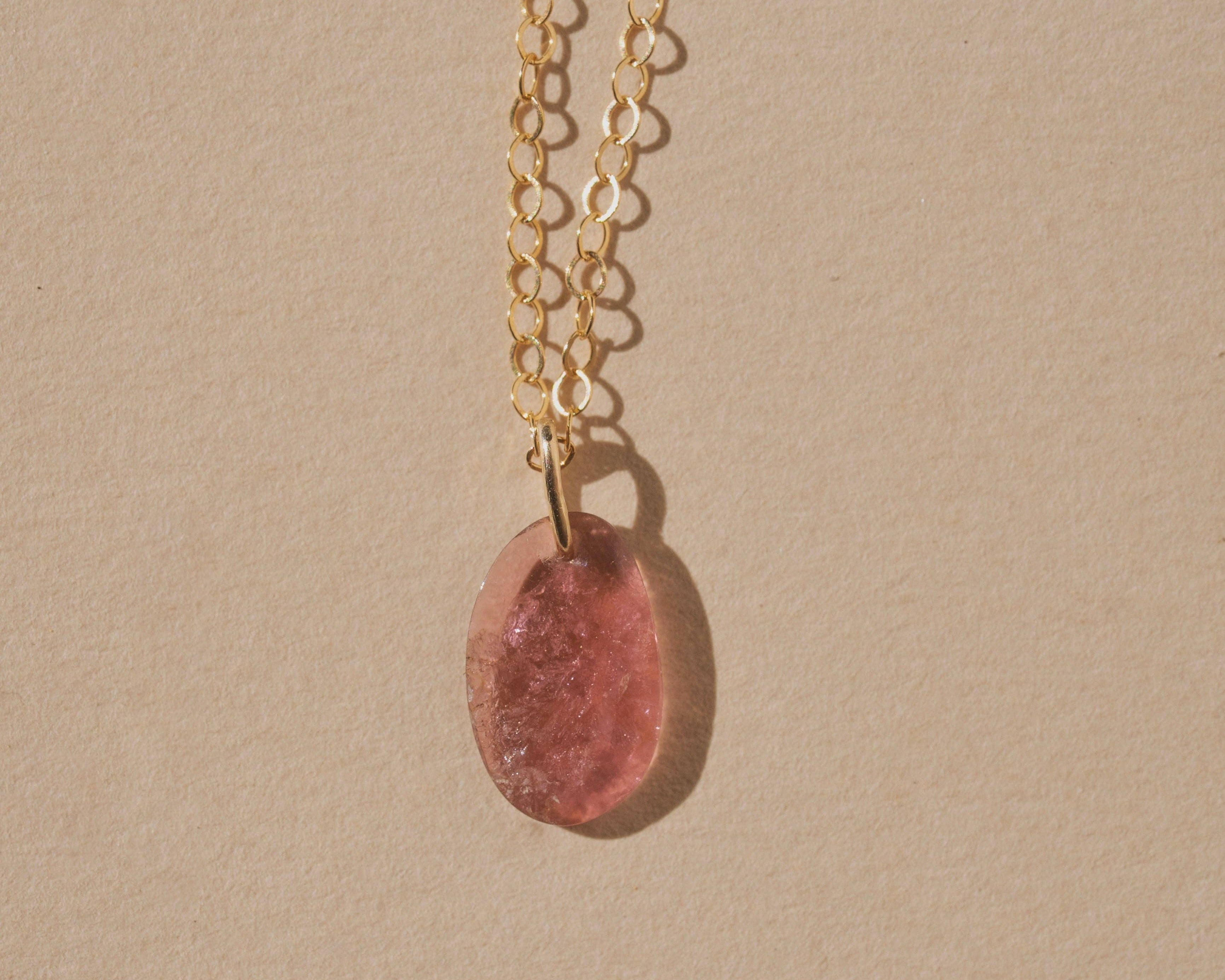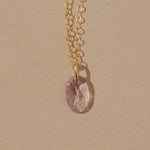 A smooth, hand cut gemstone suspended from a delicate gold cable chain. Its uneven edges and organic form give each piece its own subtle charm. Simple and minimal, yet adding a touch of color and character, it layers beautifully with other necklaces or stands alone as a small amulet of earthly elements ~ a rough gem imbued with the history, lore, and enduring power of the natural world.