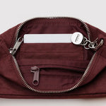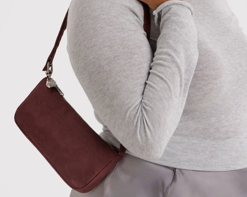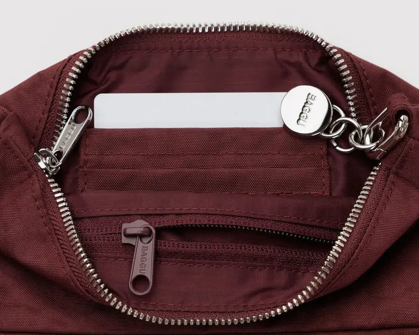 A sleek, compact bag featuring built-in card slots for organization, metal charm, and adjustable strap.
