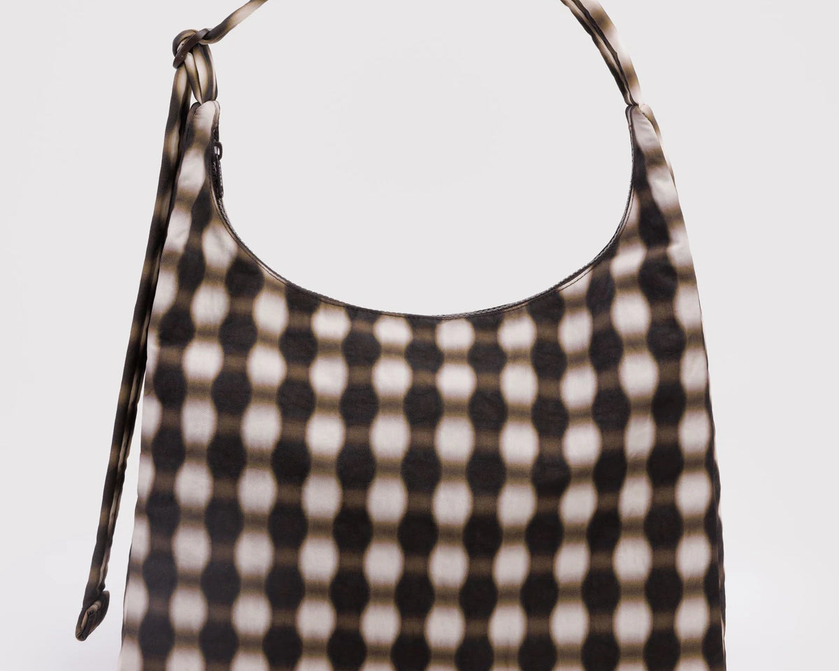 Nylon Shoulder Bag - Blurred Gingham Brown - BAGGU