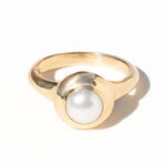 Freshwater pearl set in in solid brass, sterling silver, or gold. High polished mirror finish. Ring measures 10.5 mm at widest point. Pearls range from 6-7mm. Pearls are delicate and should be handled with care.