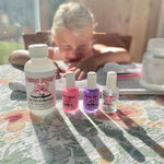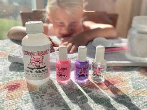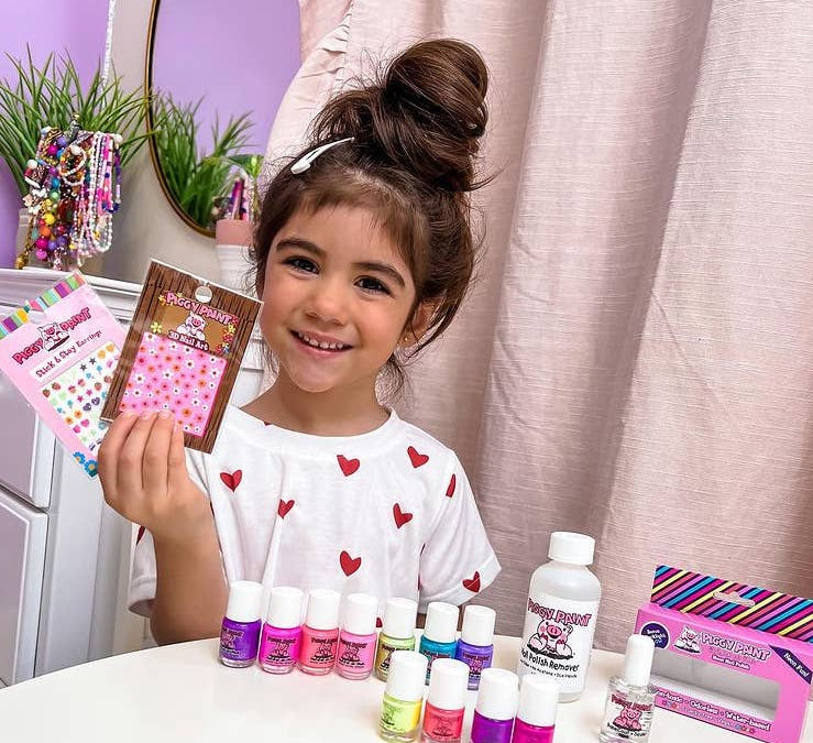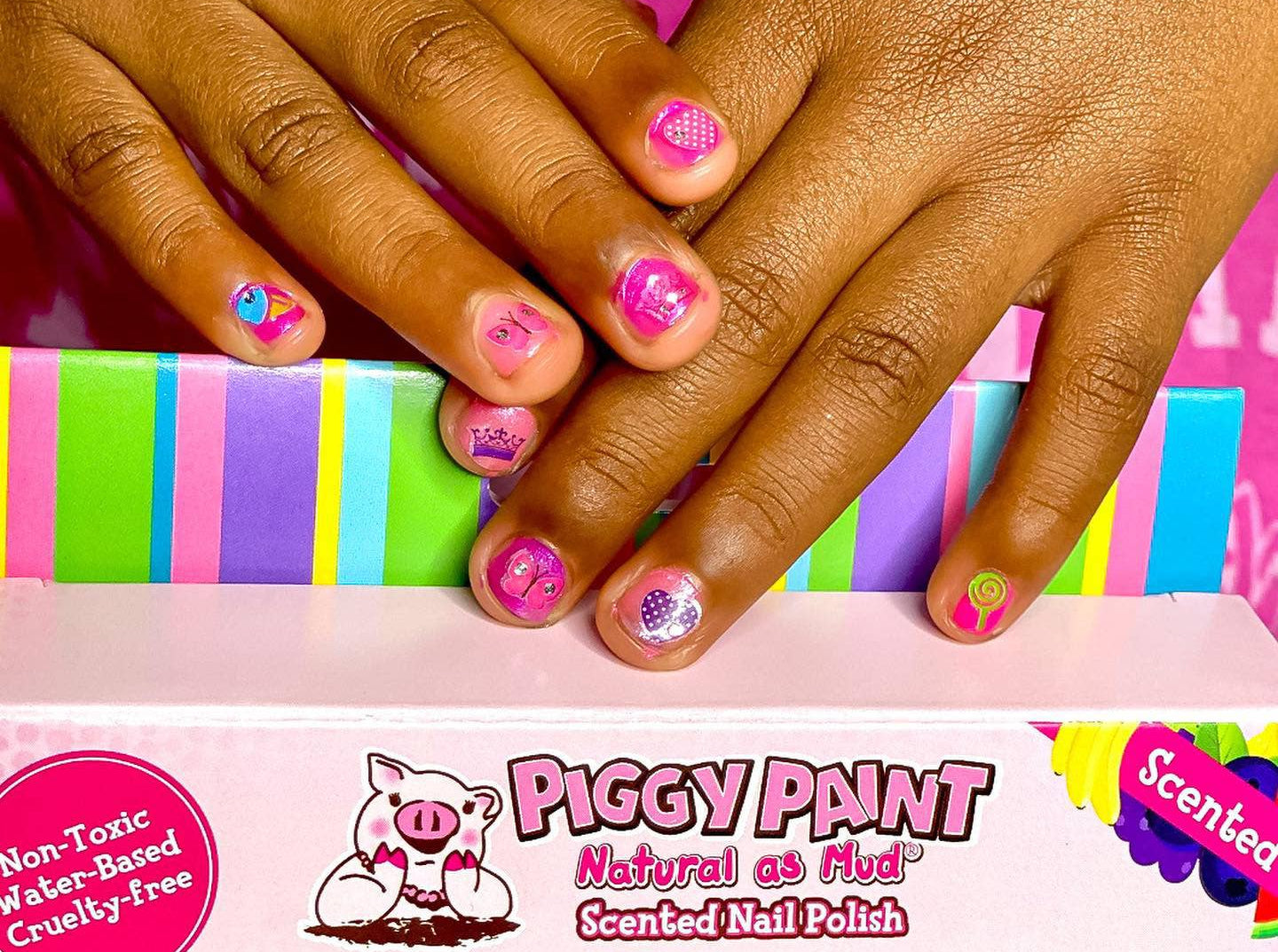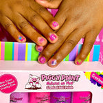 First, paint your nails with your favorite Piggy Paint color. Next, top with Nail Art stickers for EXTRA fun and creativity! For long lasting wear, seal with Shine Topcoat & Blow Dryer.